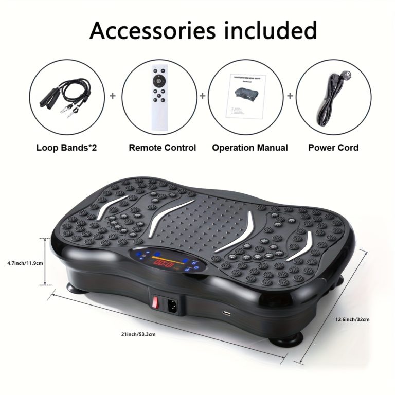 Elevate your fitness with the SORUDEL Full-Body Vibration Board. Featuring a silent motor, resistance bands, and wireless music integration, this portable gym enhances circulation and muscle tone. Enjoy remote control convenience for a tailored workout experience, all without batteries. Transform your home into a fitness hub with this efficient vibration platform.