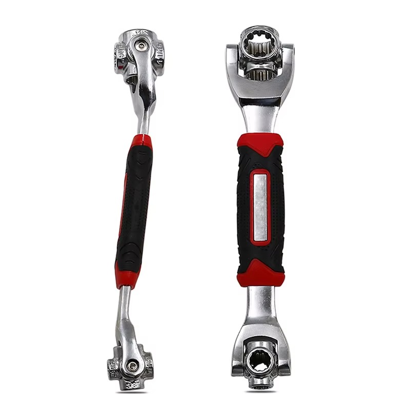 The 360° Universal Spanner is a versatile 48-in-1 multi-function wrench, designed to make repairs quick and easy. With its 360-degree rotating head and unique click-switch design, you can instantly adjust between different sizes and angles to fit nuts and bolts of various dimensions.