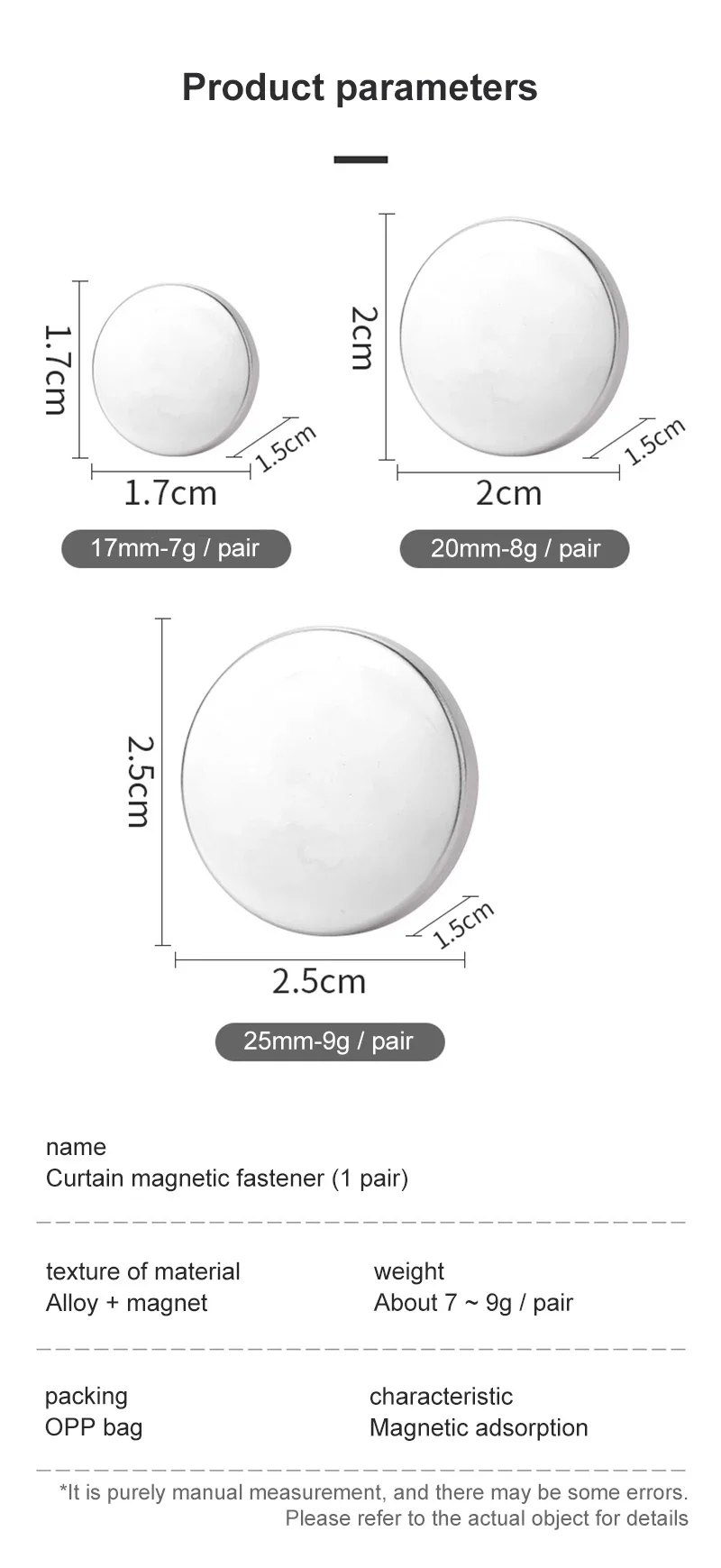 Made from high-quality metal alloy, these magnetic buttons are rust-proof, durable, and designed to stay in place without sliding or falling off. Each set includes 4 pairs of magnetic buttons that can be positioned anywhere on your curtains—at the bottom, middle, or sides—providing versatile usage for all curtain types.