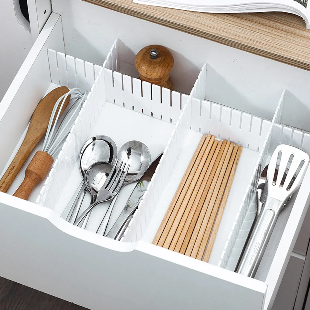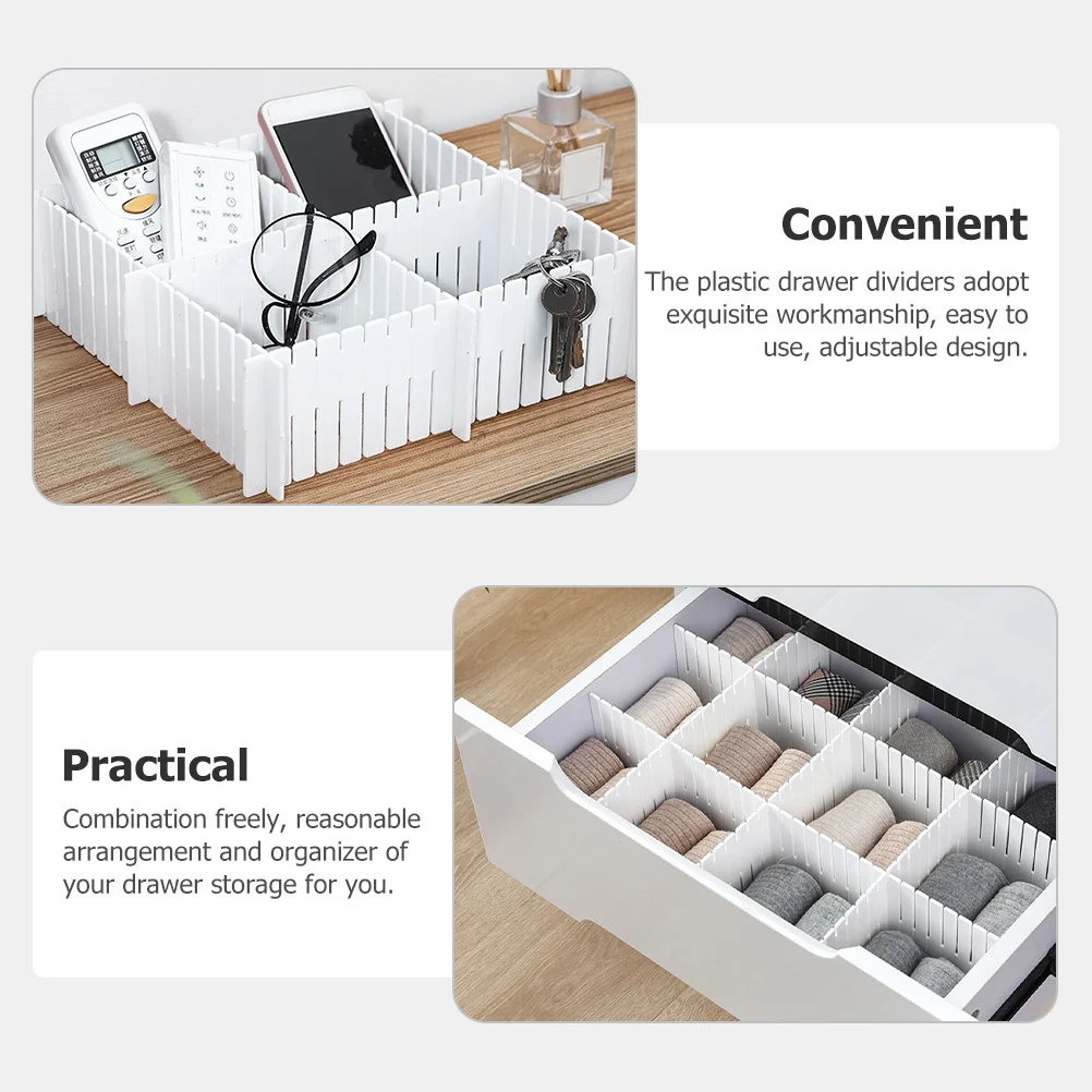 Perfect for organizing underwear, socks, ties, cosmetics, stationery, or kitchen tools, these versatile dividers transform cluttered drawers into neatly arranged storage spaces. Whether for your bedroom, office, or kitchen, this set provides a simple yet effective way to maximize your drawer space and efficiency.
