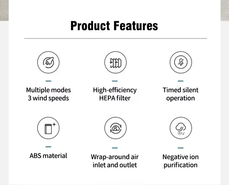 Filtration: Non-woven fabric + H13 HEPA + Activated Carbon + UV Sterilization + Negative Ions