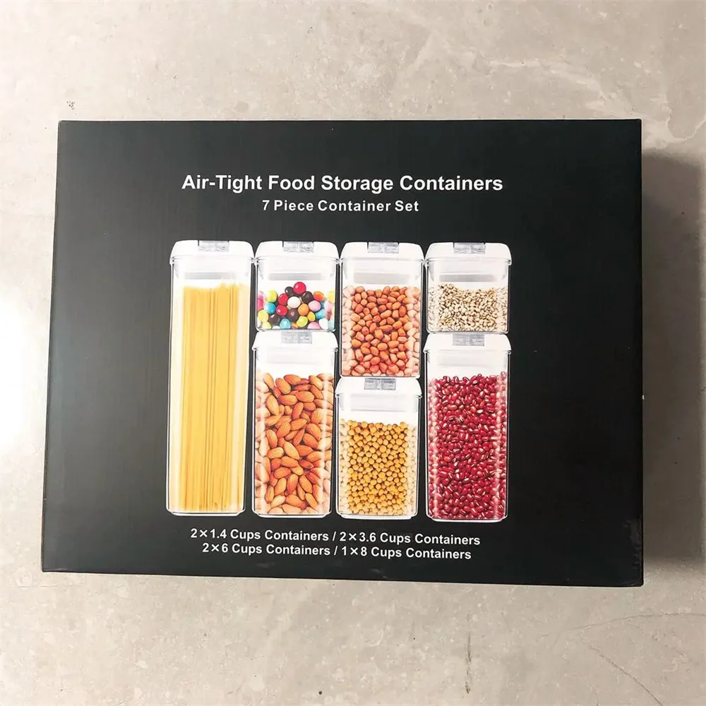 Airtight Food Storage Container kitchen containers Set 7 Piece Set Black Lid Clear Plastic Containers With 10stickers and pen