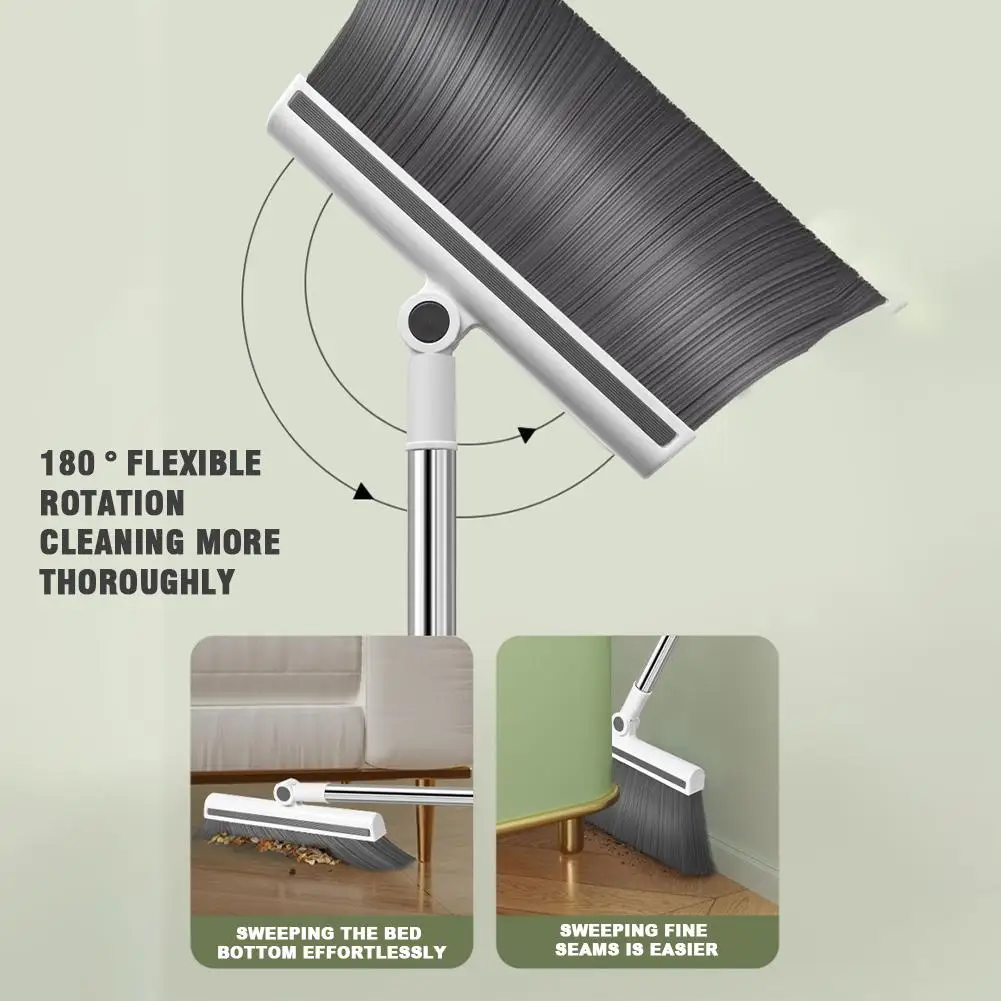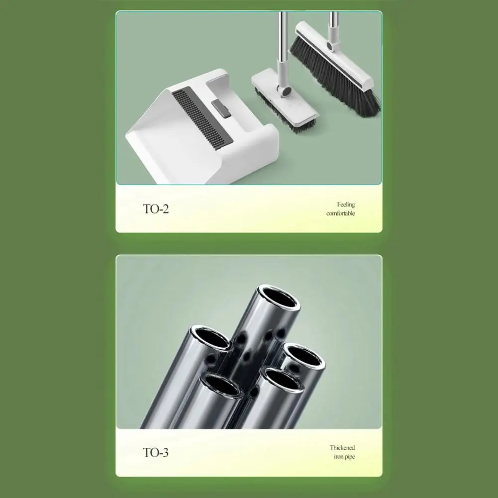 3in1 Upgrade Broom Long Handle Scrubbing Brush Dustpan Set Heavy-Duty for Home Cleaning Bathroom Kitchen