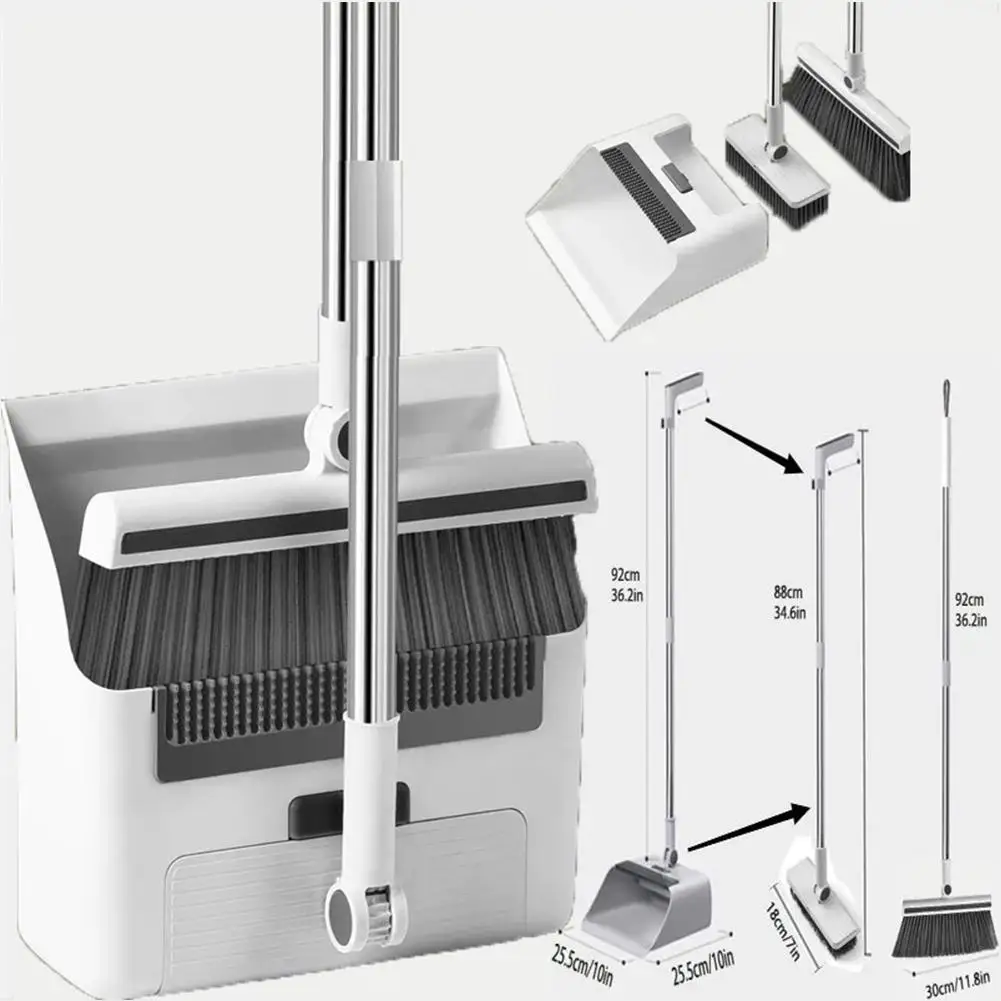 Product size: Broom:30*92cm/11.8*36.2 inch,dustpan:25.5*25.5*92cm/10*10*36.2 inch,floor brush:18*88cm/7*34.6 inch
