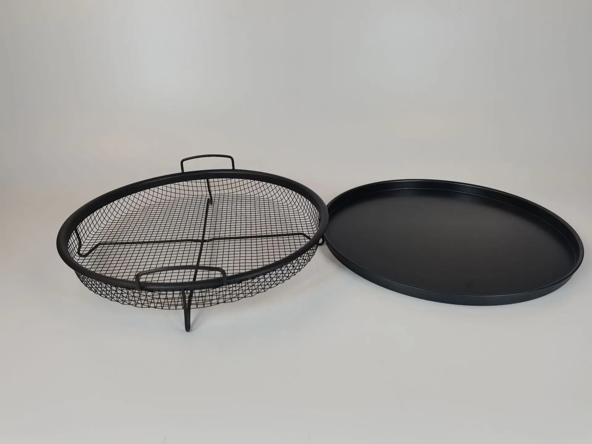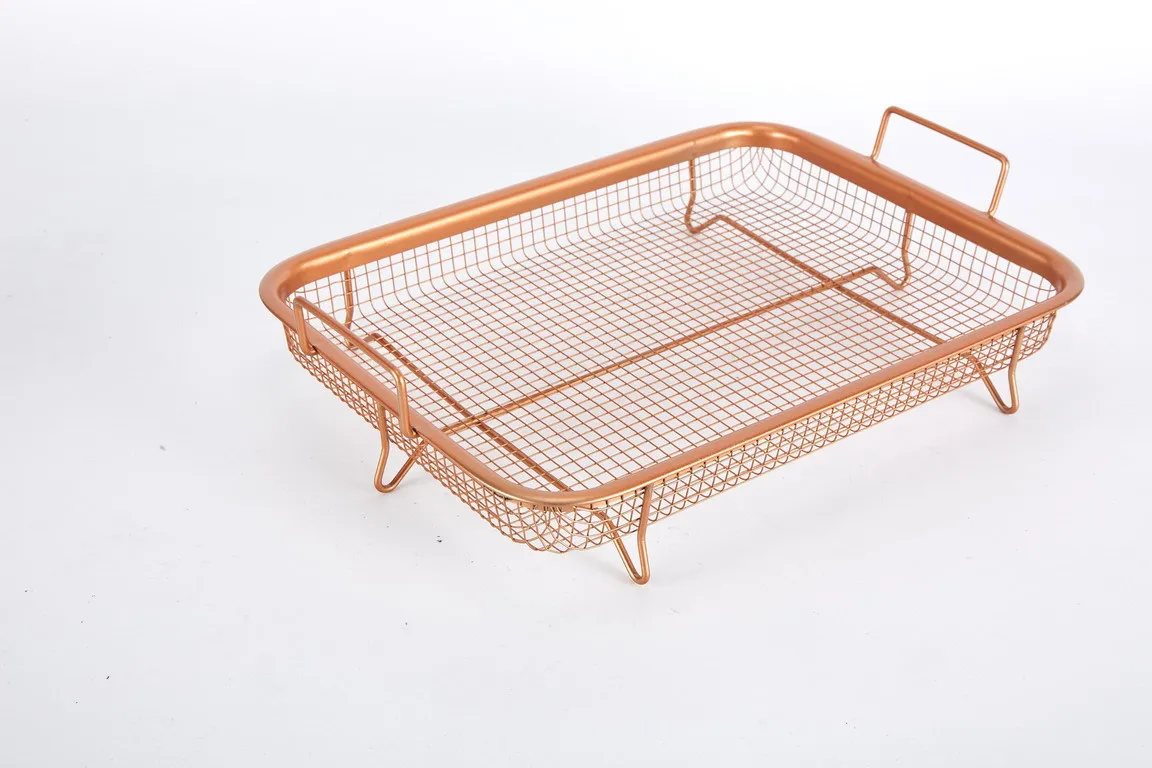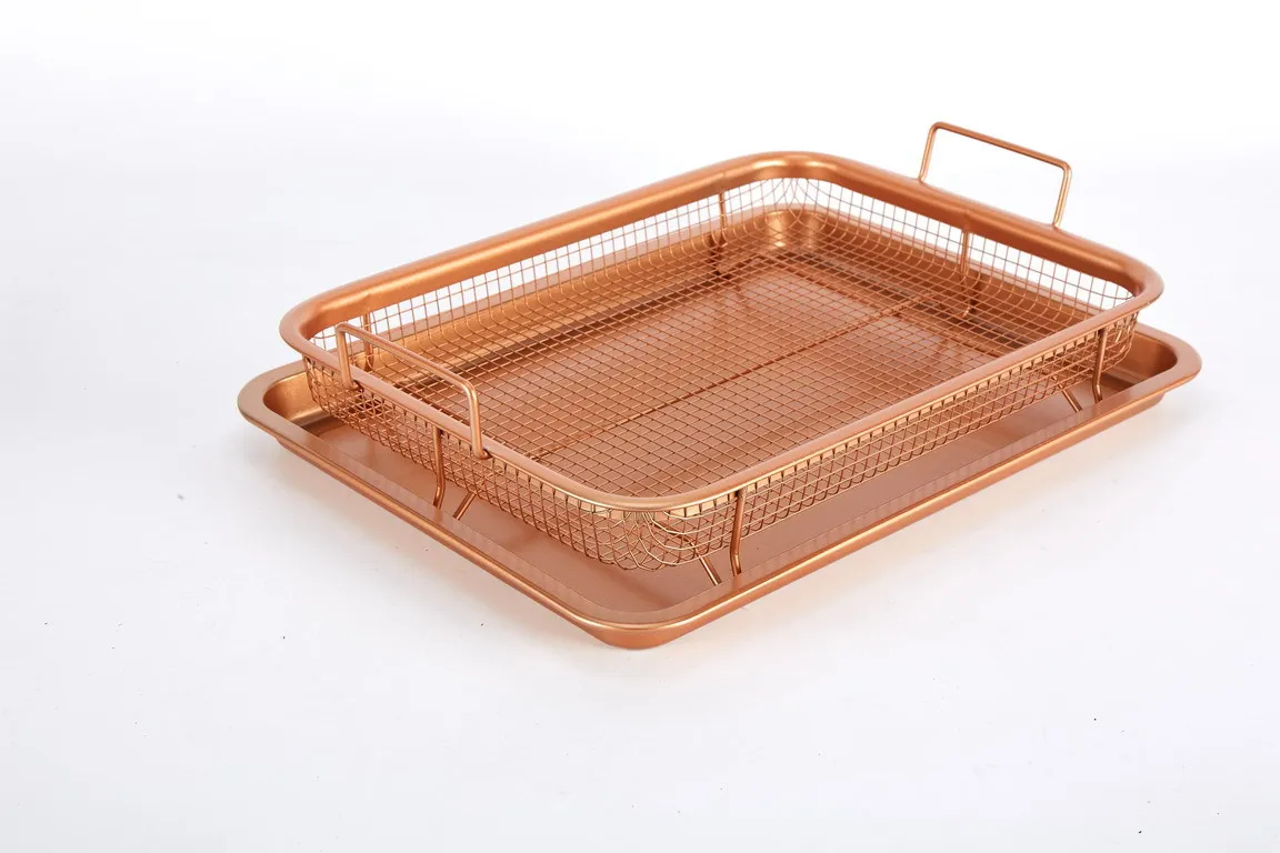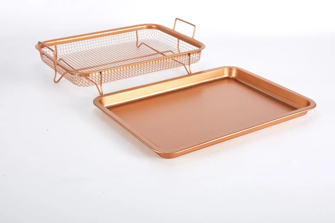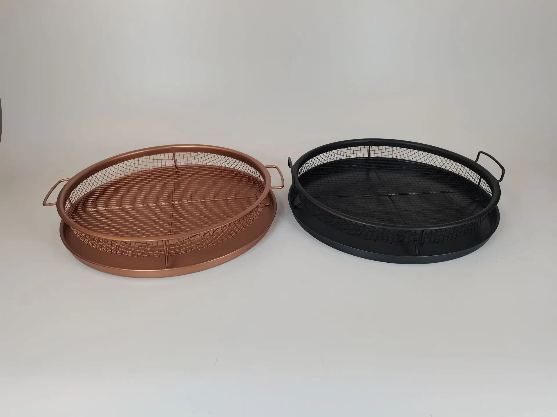 2.Oven safe to 392°F. Designed to promote 360° air flow on all sides of food for a taste of excellence