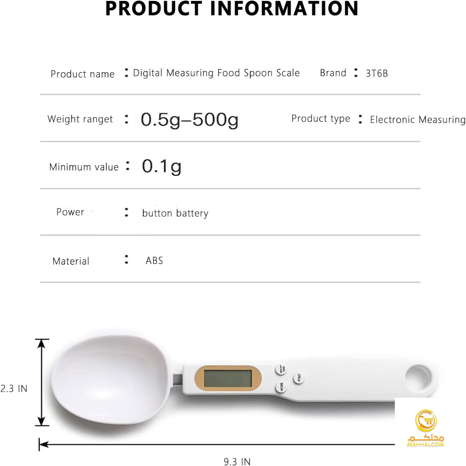 Digital Spoon Scale – LCD electronic measuring spoon, 0.1–500g precision, ABS plastic, tare/hold function, battery operated, ideal for coffee, baking, and spices.