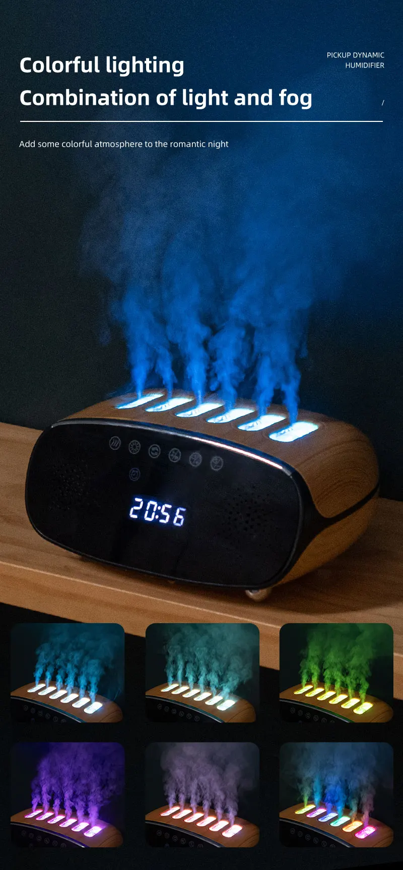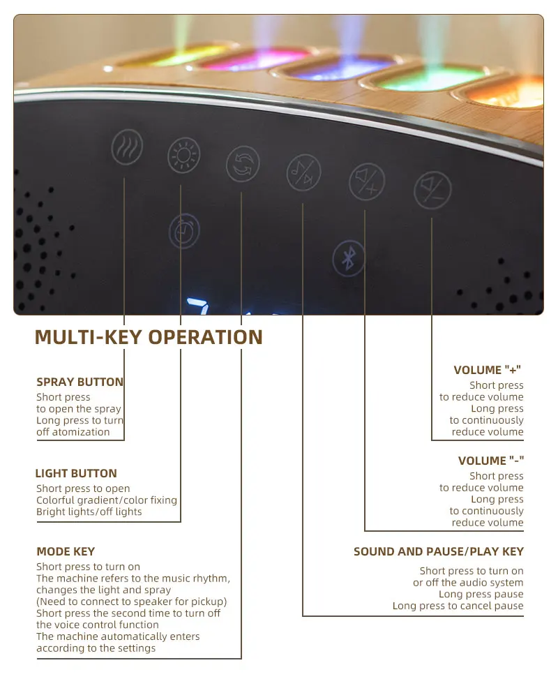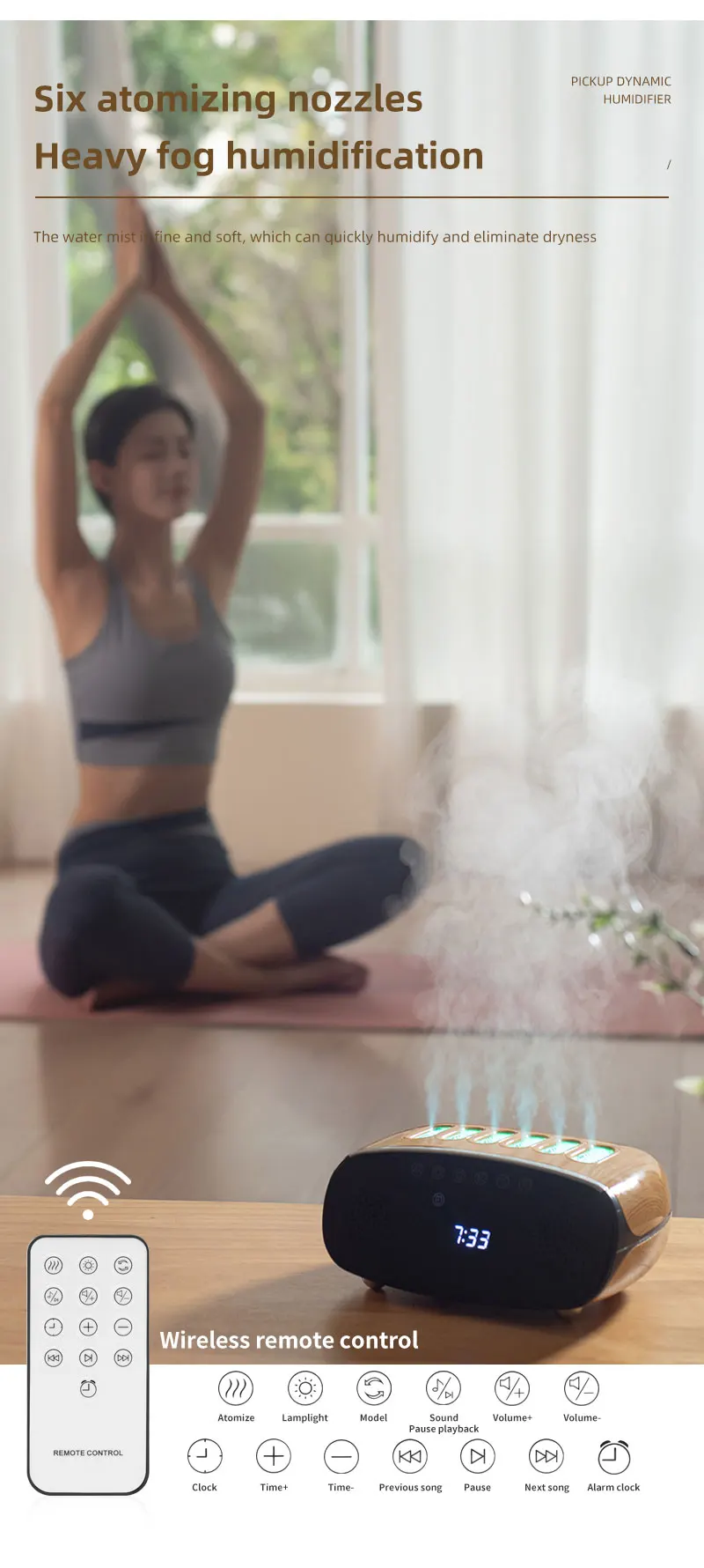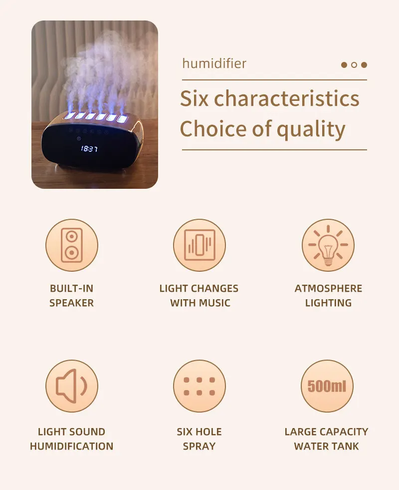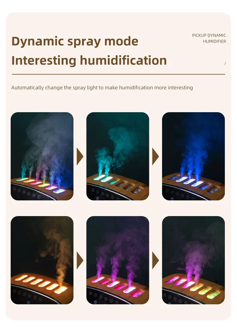 Dynamic Air Humidifier NEW 6 Spray Nozzles Pickup with Bluetooth Audio RGB Night Light Spray Change with Music Remote Control