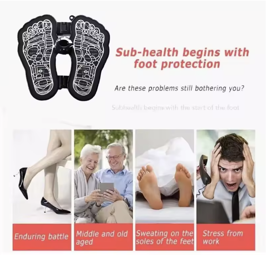 The Electric EMS Foot Massager is designed to relieve fatigue, improve blood circulation, and relax sore feet after long hours of standing, walking, or wearing heels. Using advanced EMS (Electronic Muscle Stimulator) technology and low-frequency impulse therapy, it mimics the techniques of a professional foot therapist for a soothing massage experience at home.