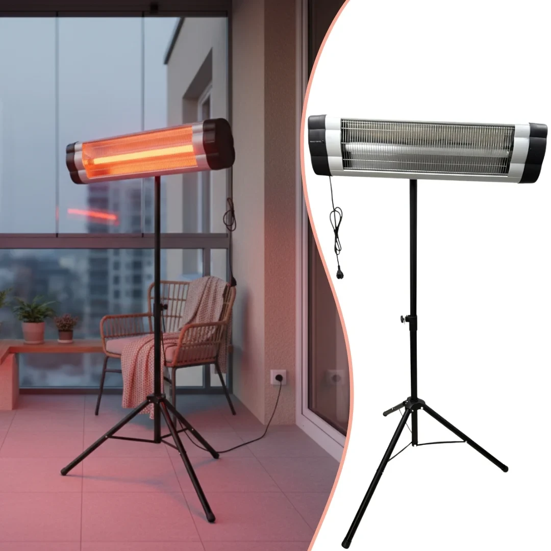 🦵🔧 Equipped with a stable tripod stand, the heater offers adjustable height settings from 130 to 172 cm, allowing you to direct heat exactly where it’s needed—whether at sitting level or across a larger space.