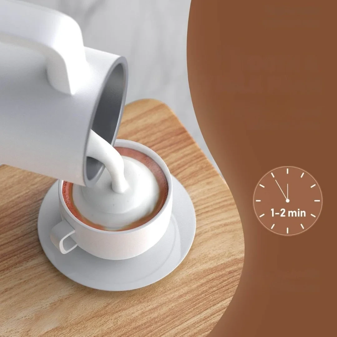 ⚡🔥 Powered by a strong 500W motor, it produces dense and creamy milk foam in just 110 seconds and heats milk evenly within 2–3 minutes. The optimal heating temperature of up to 65°C enhances milk texture and flavor, delivering café-quality results at home.