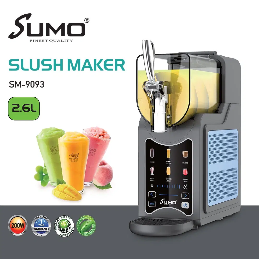 Sumo SM-9093 2.6L electric slush maker with 6 smart programs — creates perfect frozen drinks in 25–40 minutes, easy to clean, large capacity, and ideal for home, parties, and summer fun.