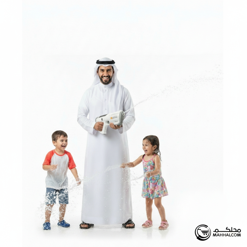 Electric water gun with powerful long-range spray, large water tank, ergonomic grip, and leak-resistant design for endless summer water fun.