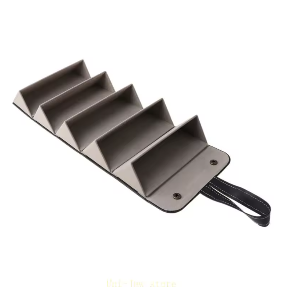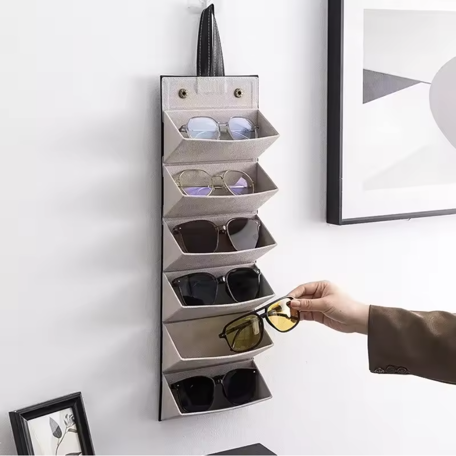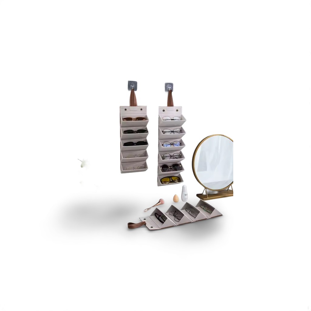 Keep your glasses organized and save space with this foldable eyeglass travel organizer. Designed with 5 independent slots, it can hold sunglasses, reading glasses, sports glasses, and more in one compact roll-up case.