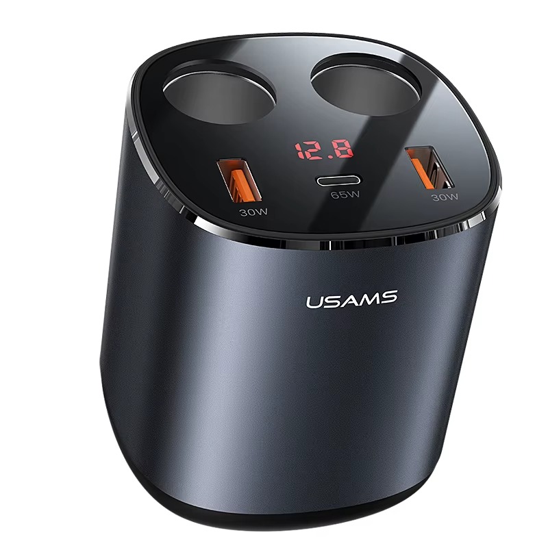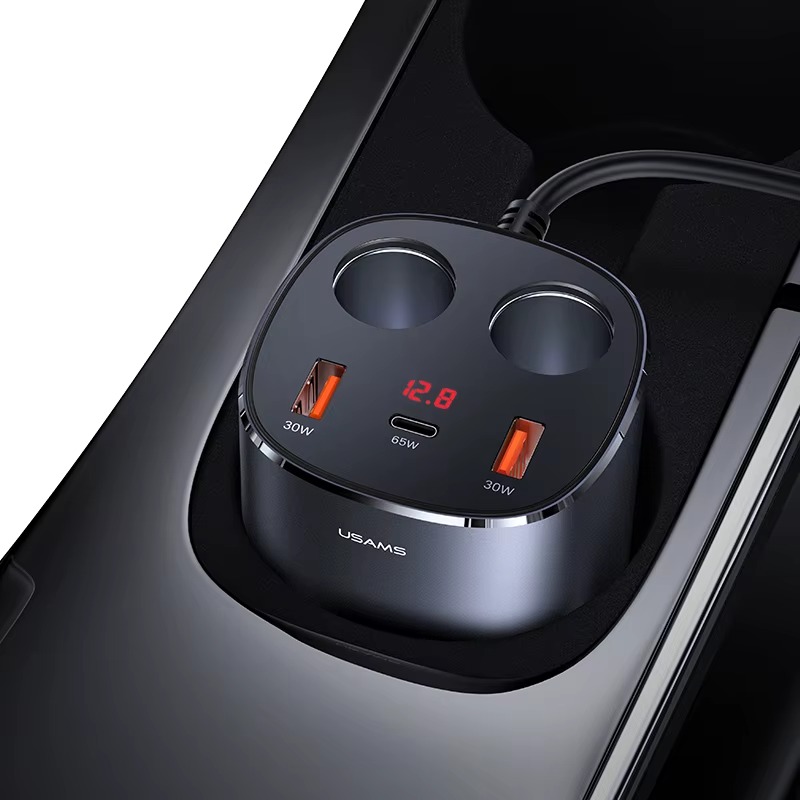 The USAMS CC151 Car Charger is a powerful and versatile charging hub designed for modern drivers. With a total output of 245W, it combines dual cigarette lighter sockets with three fast-charging ports (2× USB-A + 1× Type-C) to power multiple devices simultaneously.