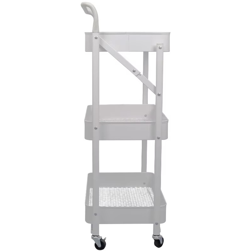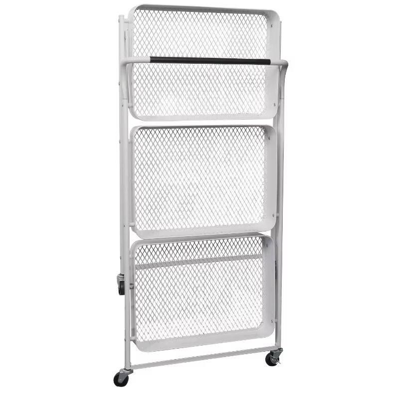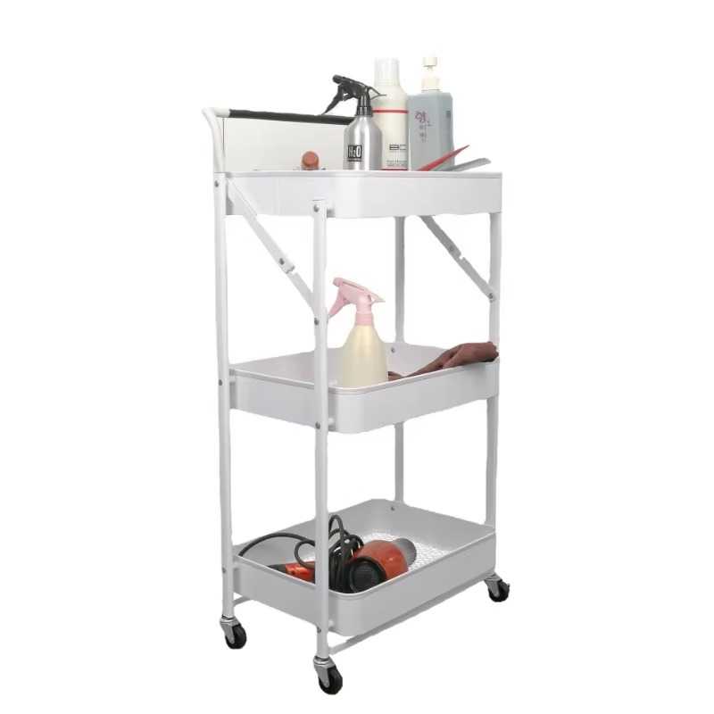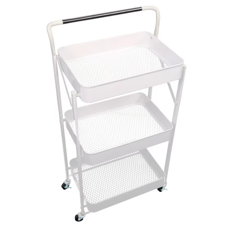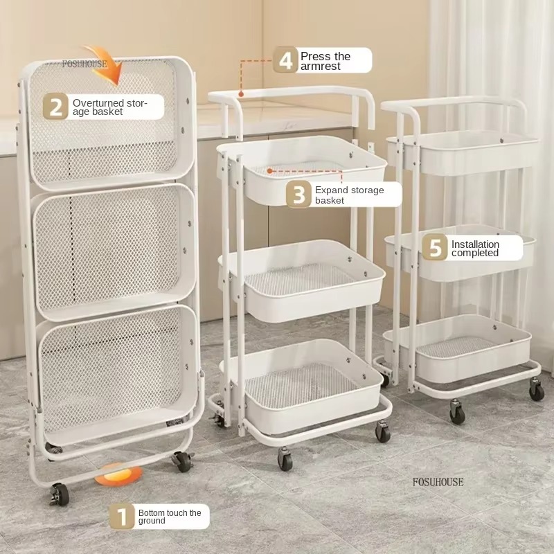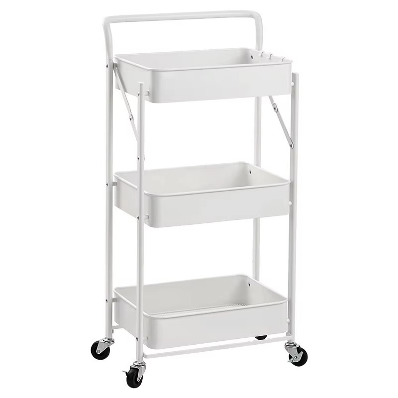 Durable foldable storage trolley with 3 layers and wheels – ideal for kitchens, bathrooms, and home organization.
