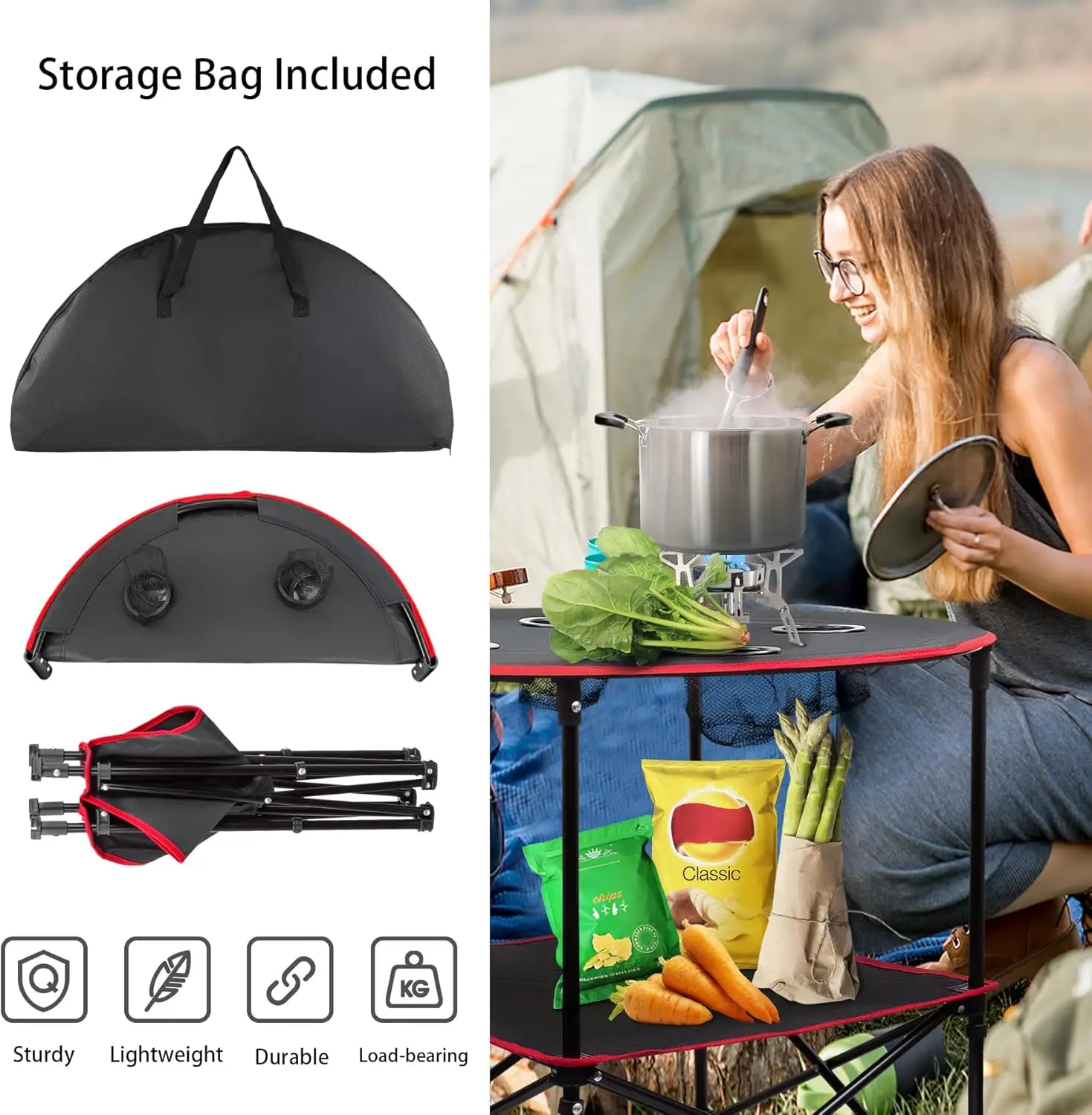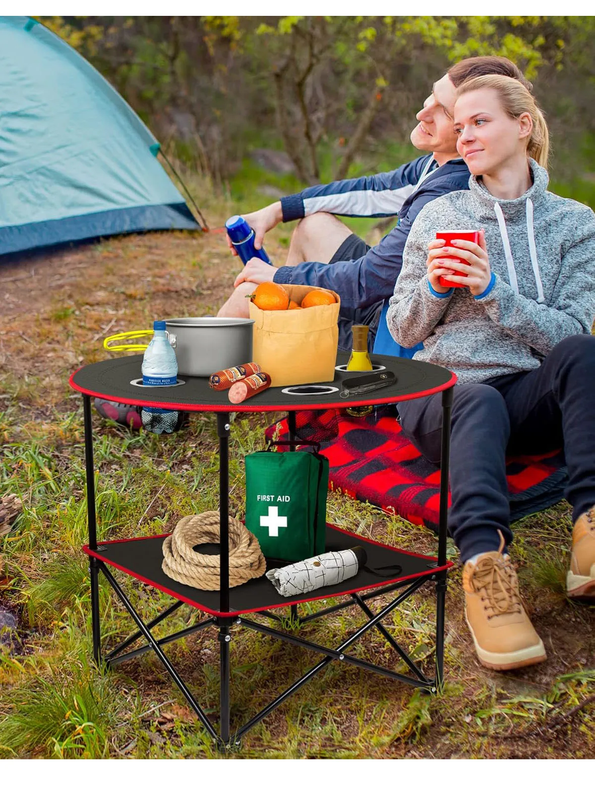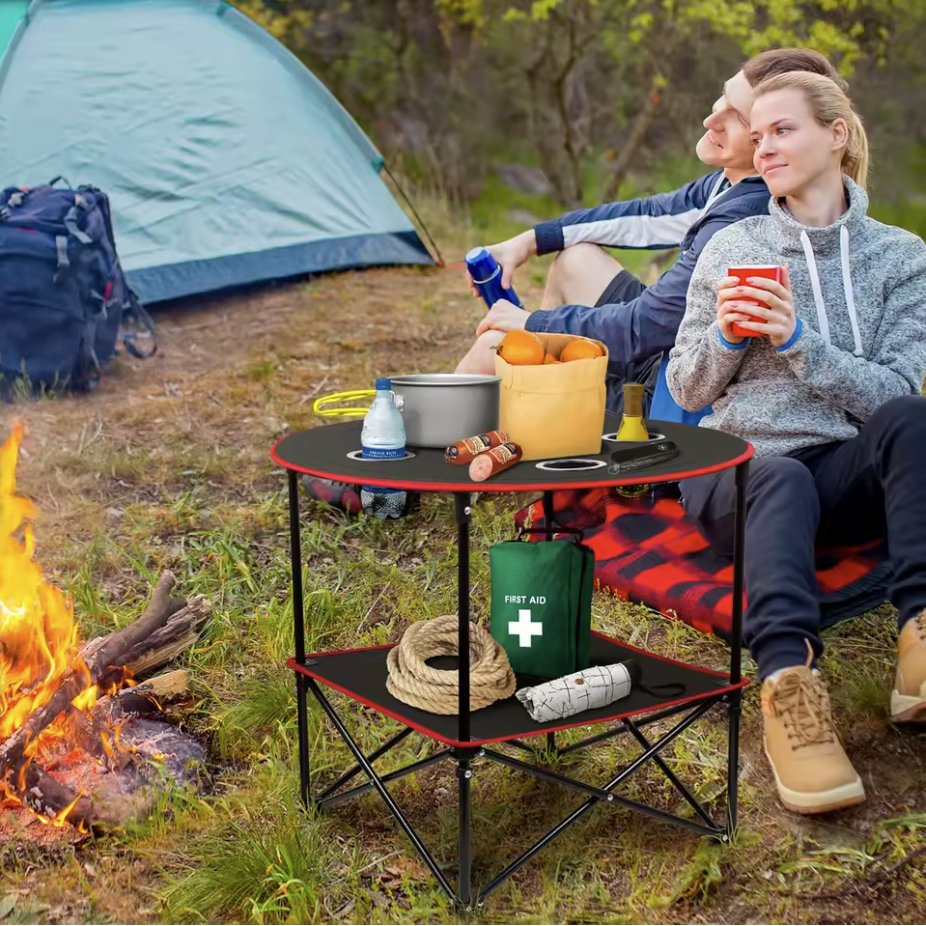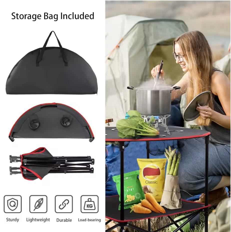 • Folding Table with 4 Cup Holders Carry Bag for Travel Camping Beach Backpacking Outdoor Desk
