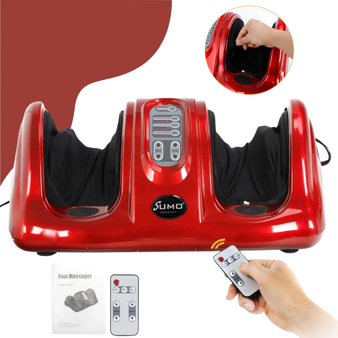 SUMO foot massager (SM-5230) with reflexology technology, multiple massage modes, remote control, and circulation-enhancing relaxation therapy.