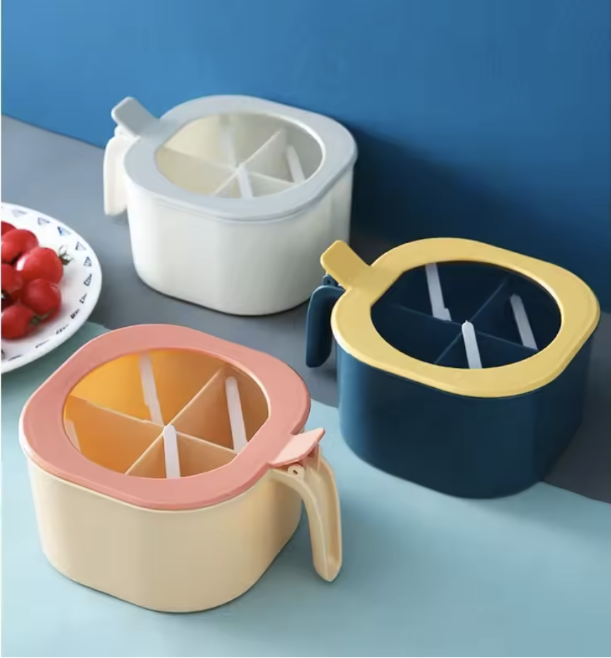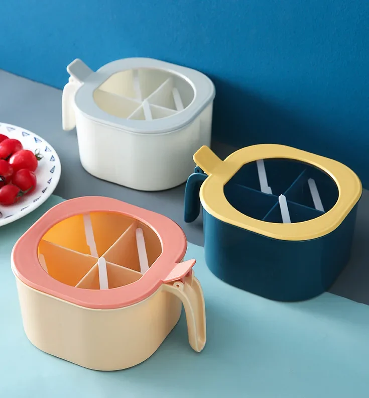 Made from high-quality food-grade PP + PS materials, it’s safe, durable, and built for everyday use. The transparent cover makes it easy to distinguish between condiments, while the ergonomic handle ensures a secure grip, even with wet hands. Each compartment is removable for easy cleaning, preventing cross-flavors and maintaining freshness.