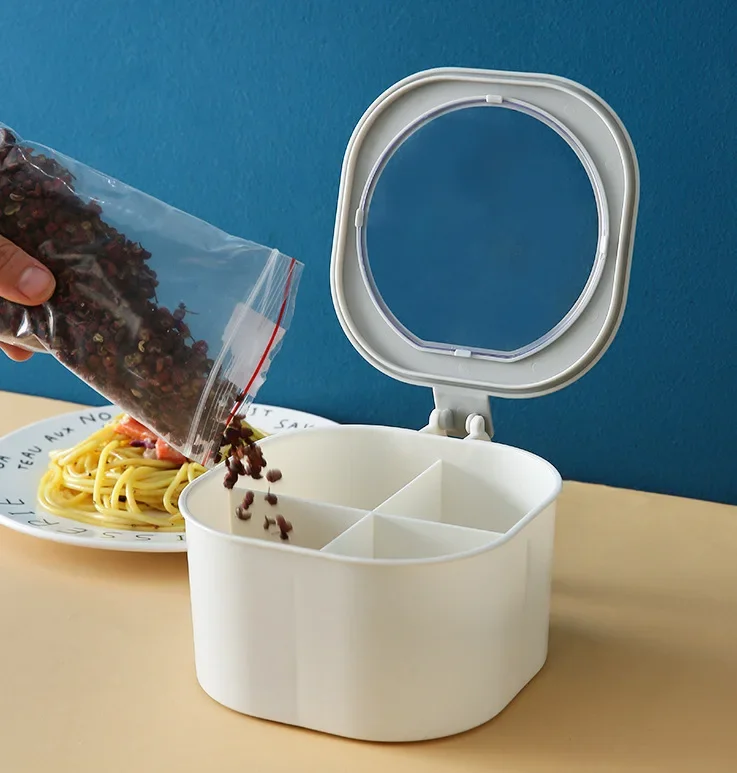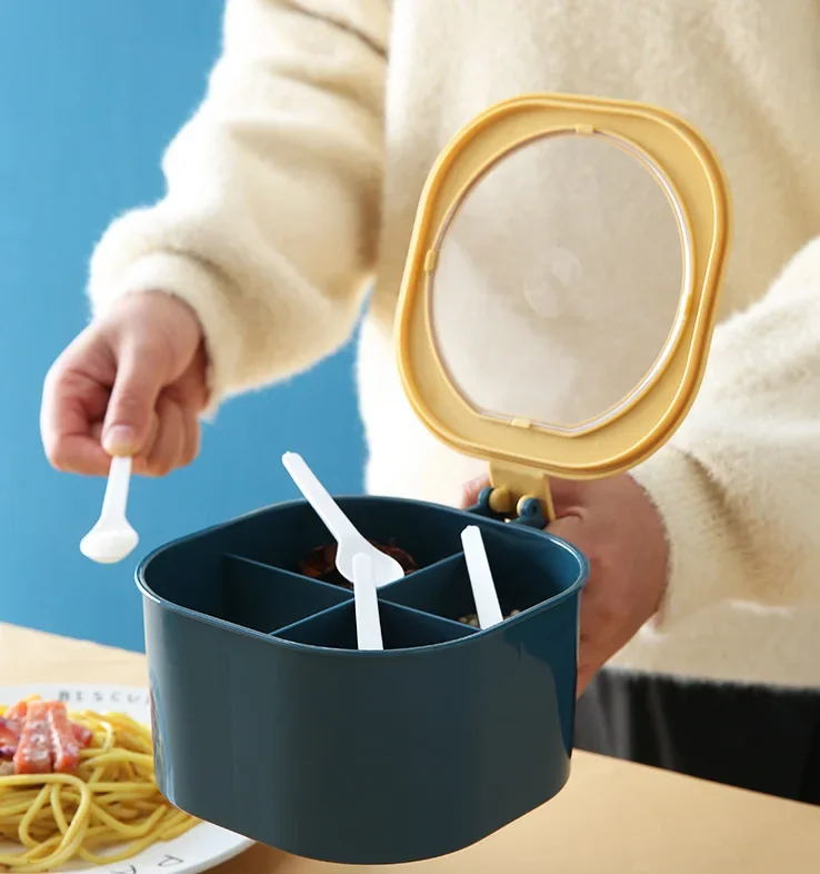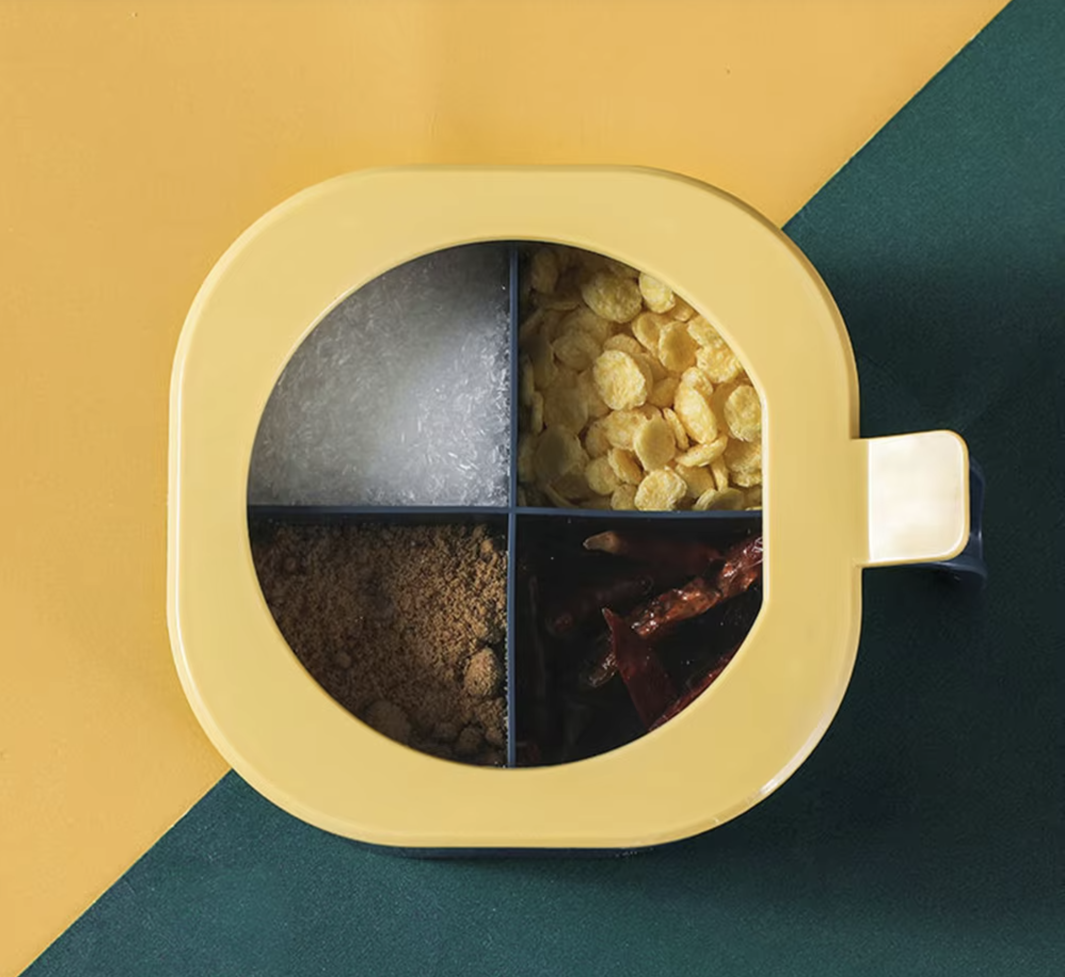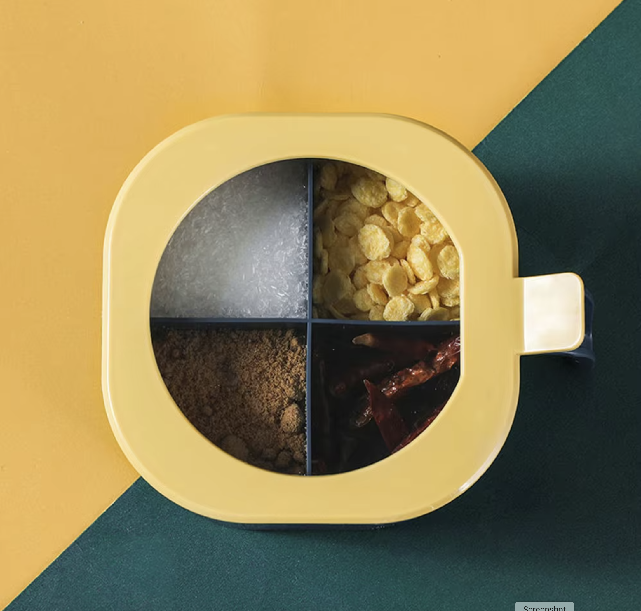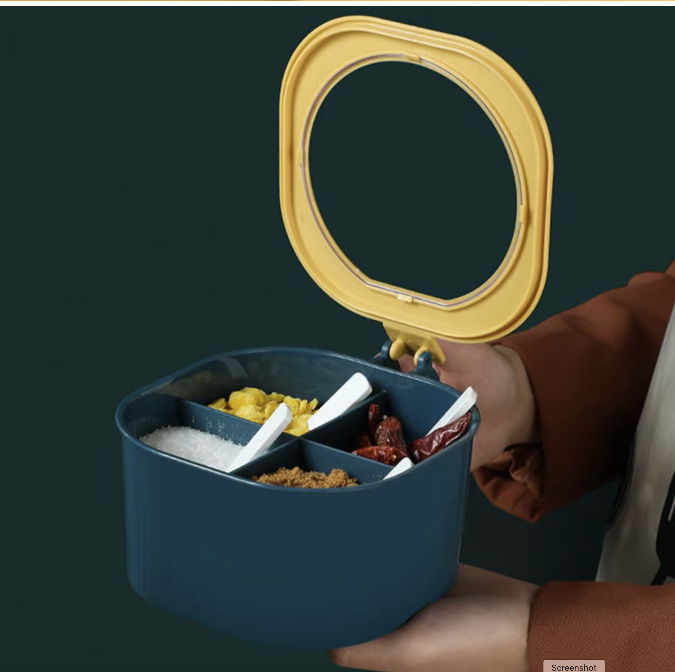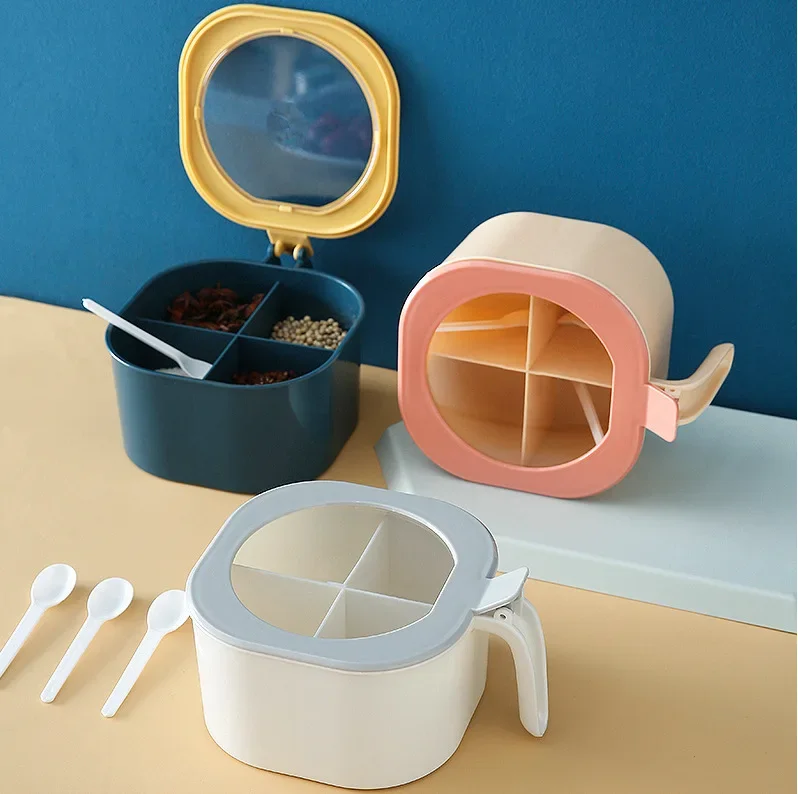 Keep your kitchen organized and your condiments fresh with the Four-Grid Seasoning Box. Designed with four separate compartments, this storage set is perfect for neatly storing a variety of spices and condiments such as sugar, salt, pepper, corn starch, and more.