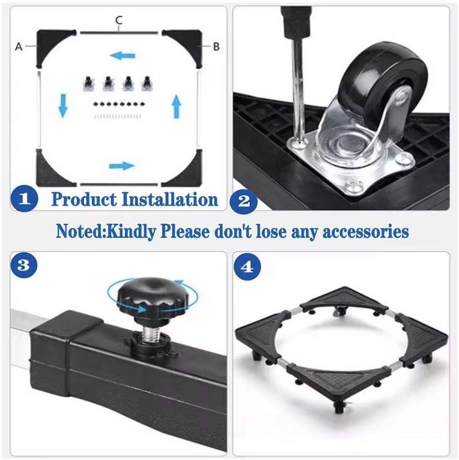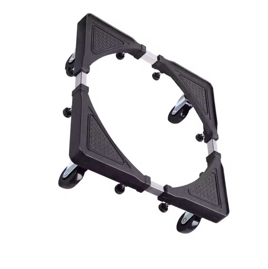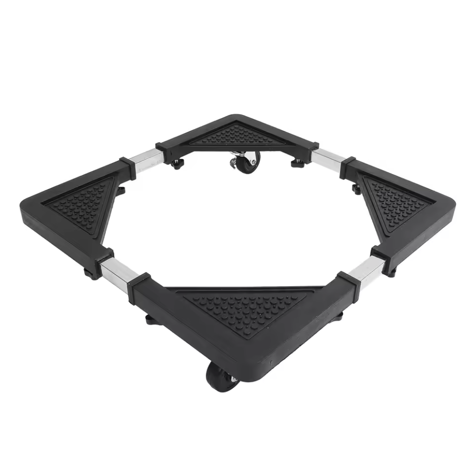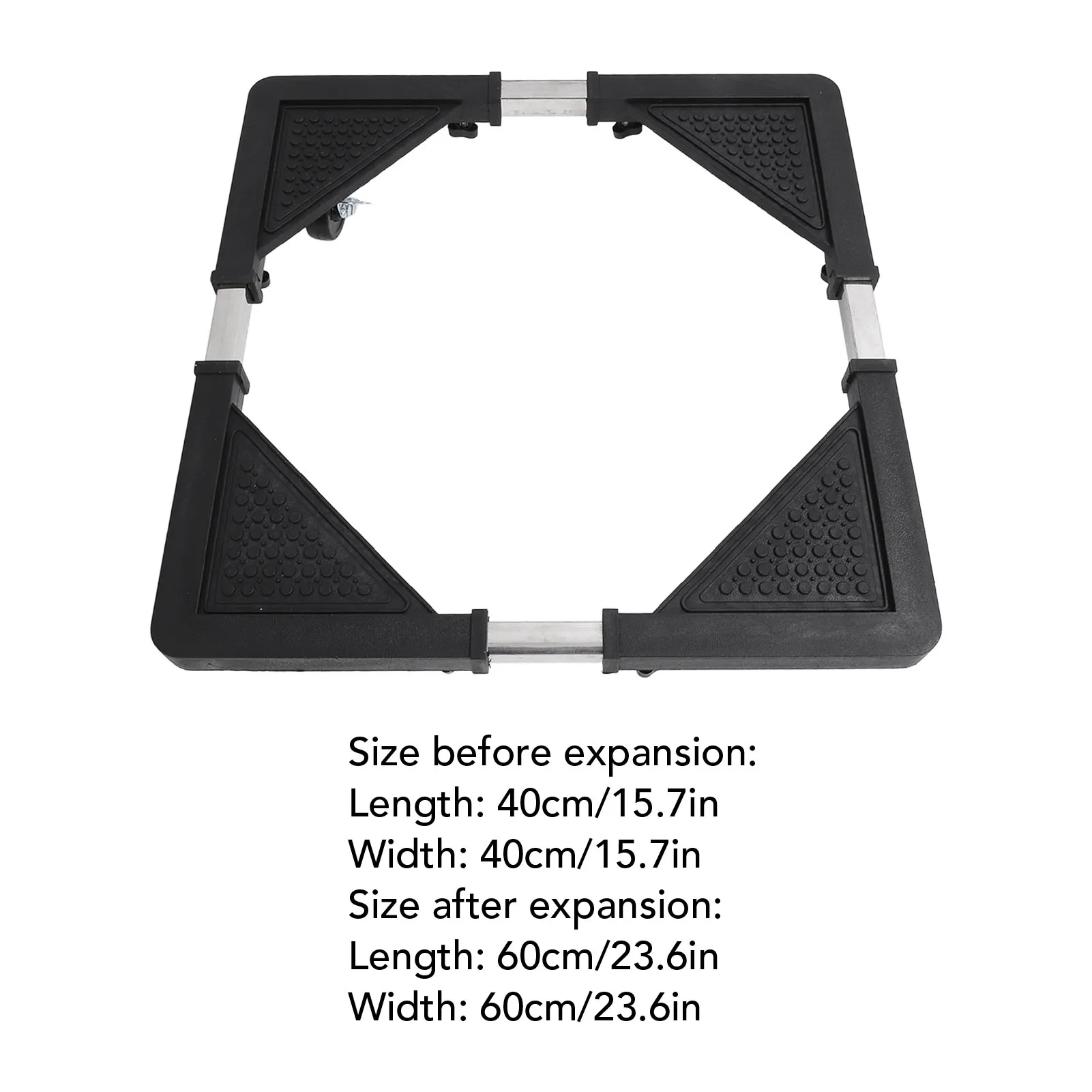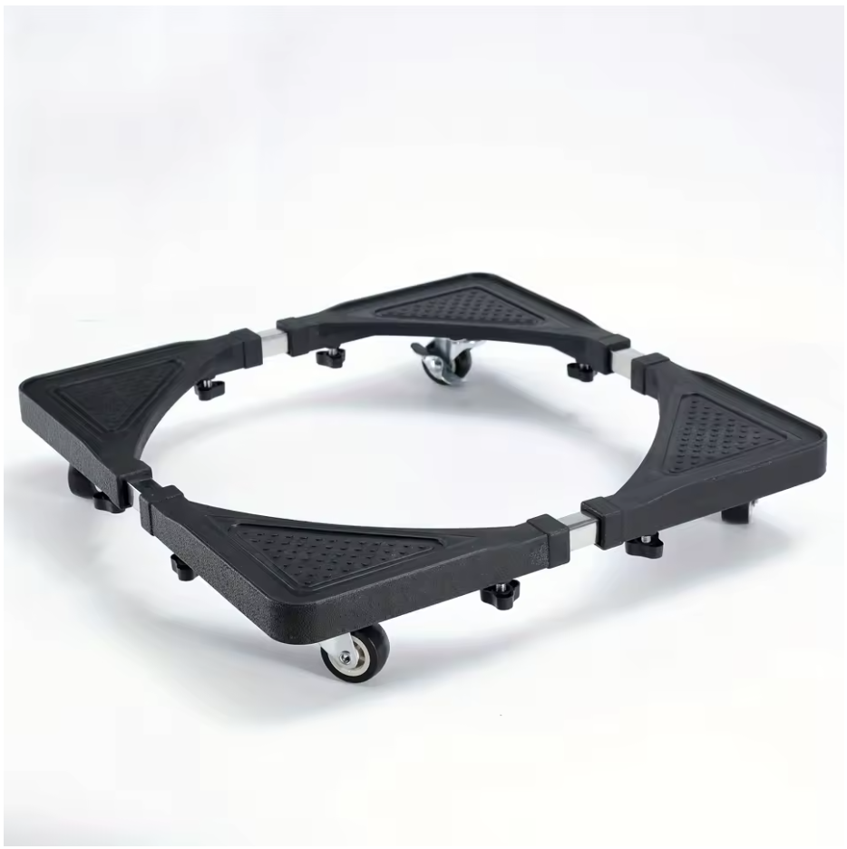 Fridge Stainless Steel Adjustable Base Washer Trolley Bracket Black Strong Load Capacity 360 Locking Wheels Moving for Freezer