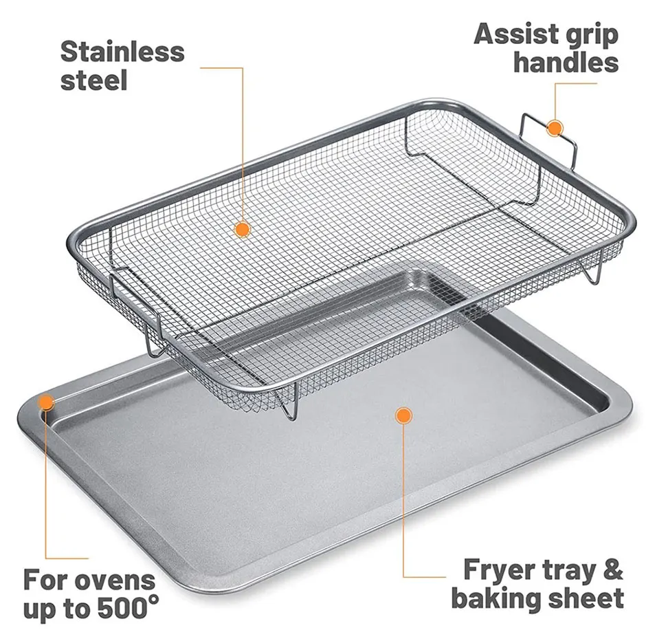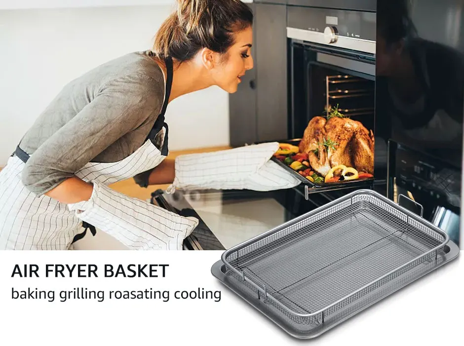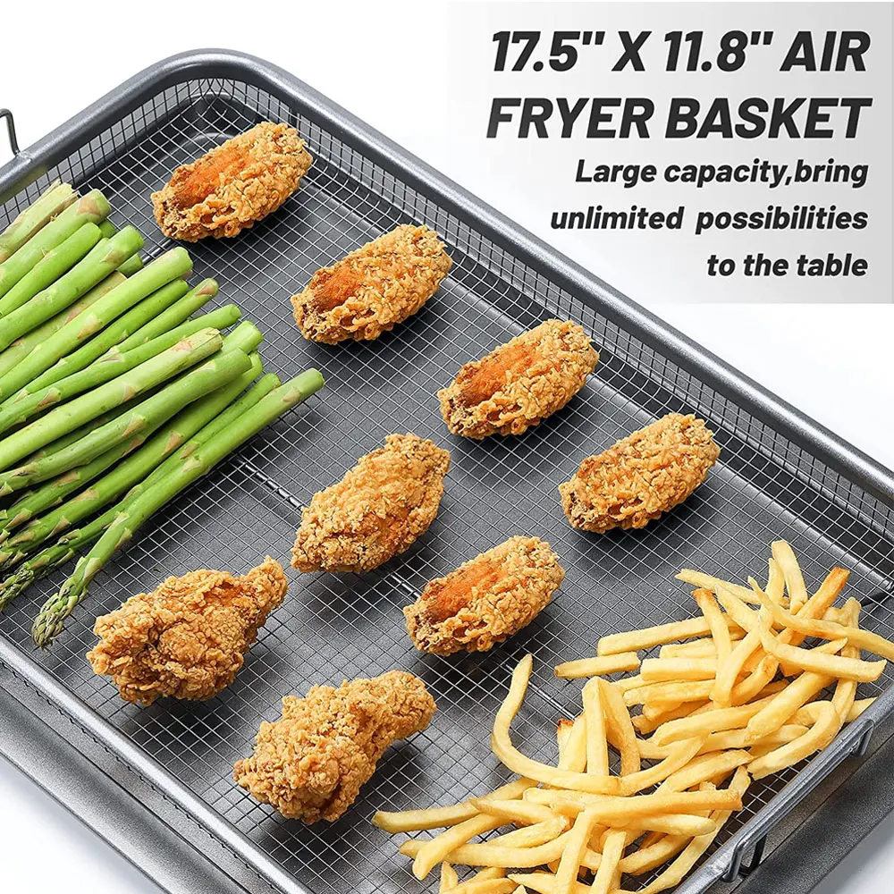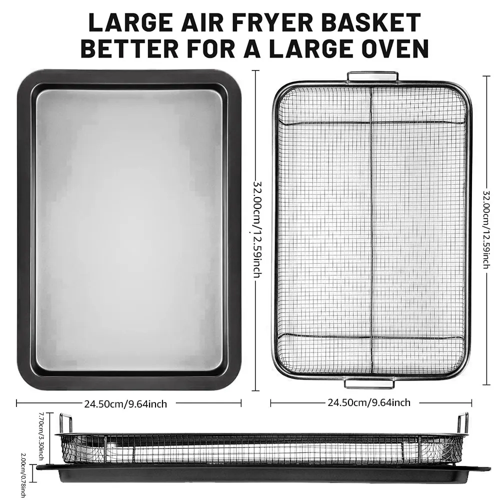 * Keep your kitchen tidy: Say goodbye to messy kitchens! Not only does this oven air fryer basket keep your kitchen clean by keeping oil and grease splashing, it also serves as the perfect cooling rack for fried and grilled foods, a drain basket for fruits and vegetables, and a place to put dishes and cups when not in use.