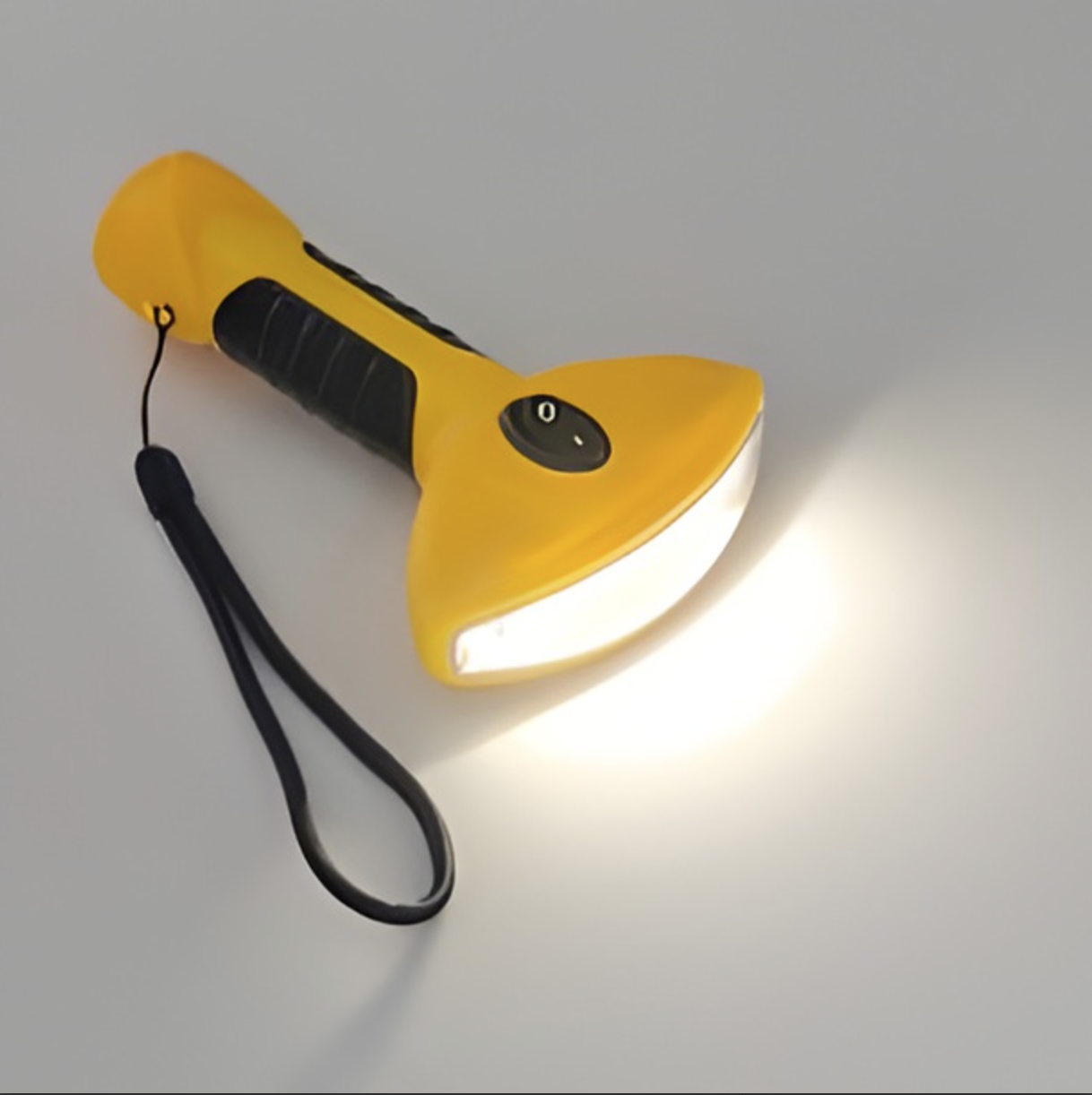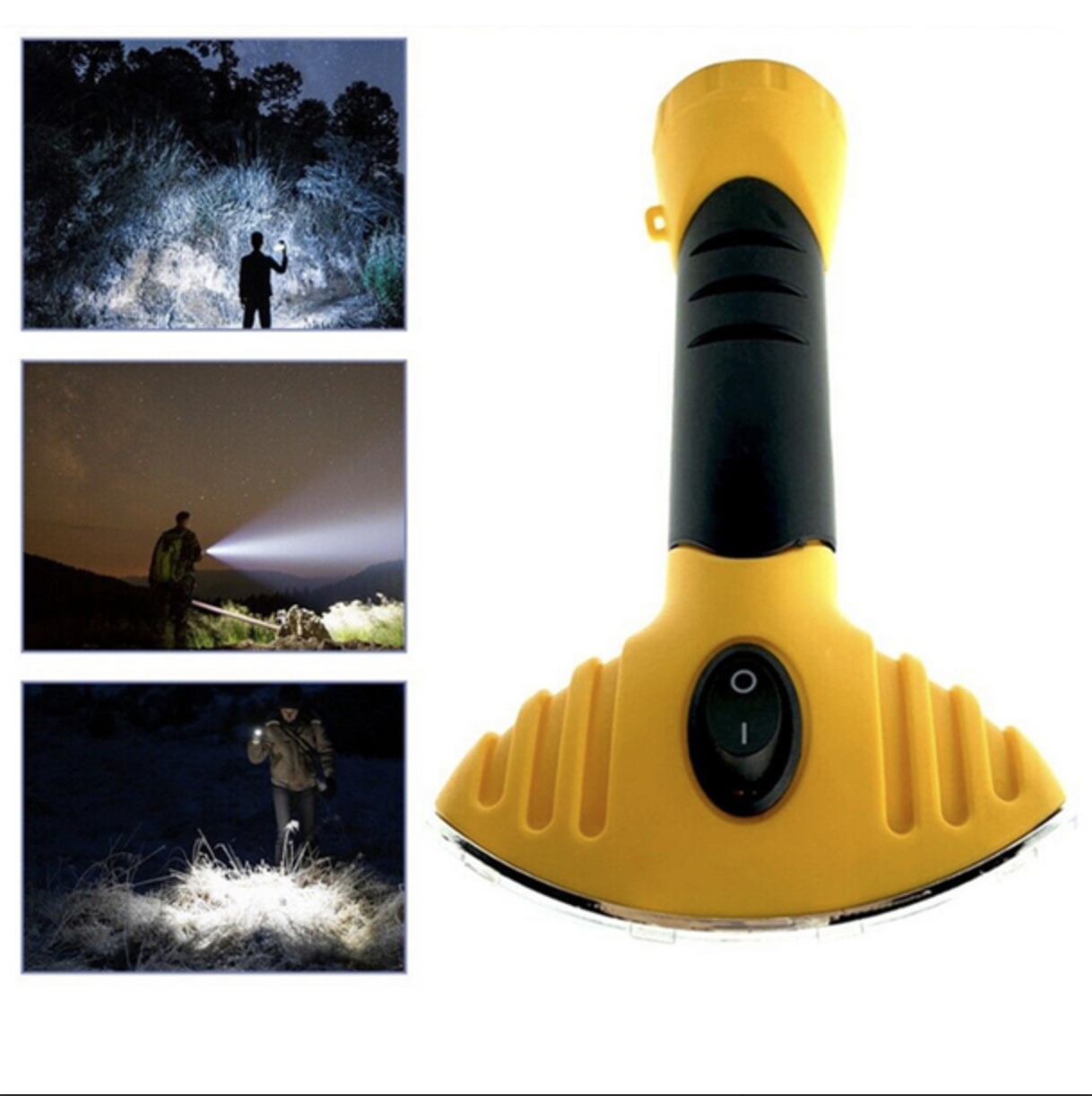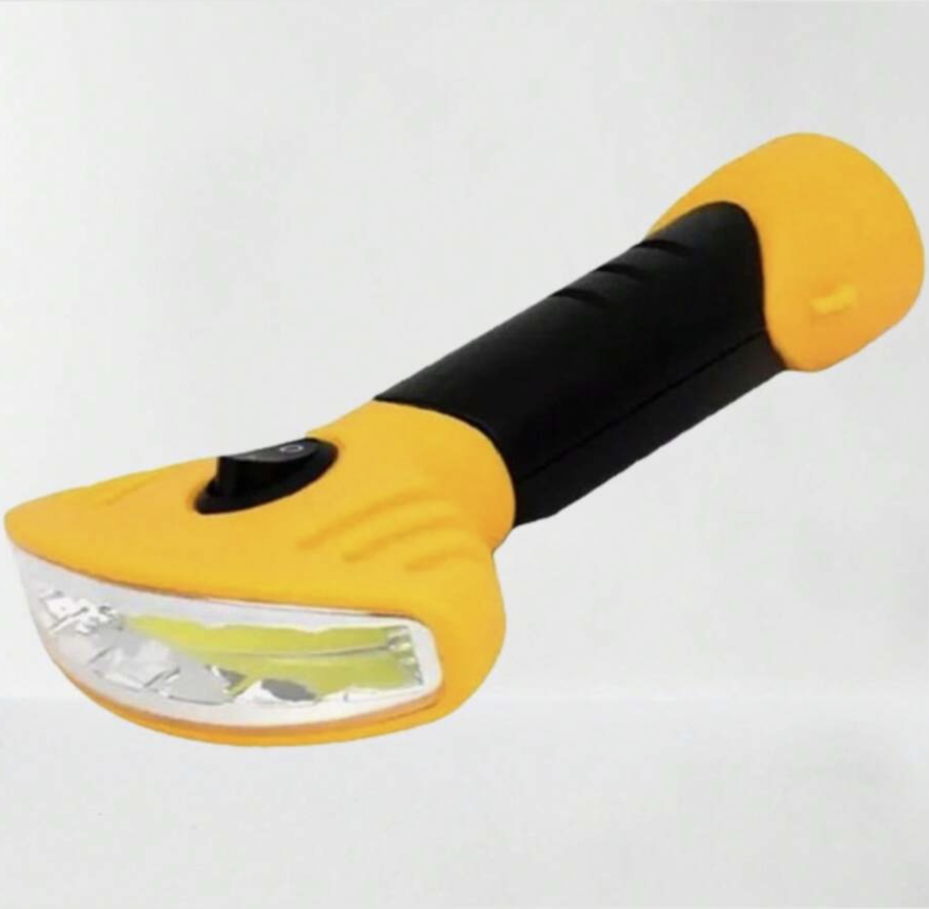 This innovative wide-beam flashlight has three powerful LED bulbs on the front that can illuminate a radius