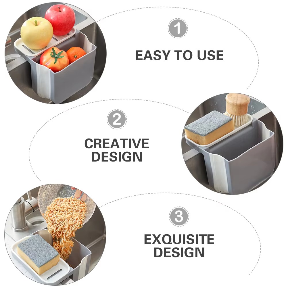 Equipped with a top tray, this versatile basket conveniently stores everyday cleaning tools such as soap, sponges, and brushes, keeping your sink area tidy and hygienic. Made from high-quality PP, TPR, and PVC, it’s durable, easy to clean, and built for long-lasting use.
