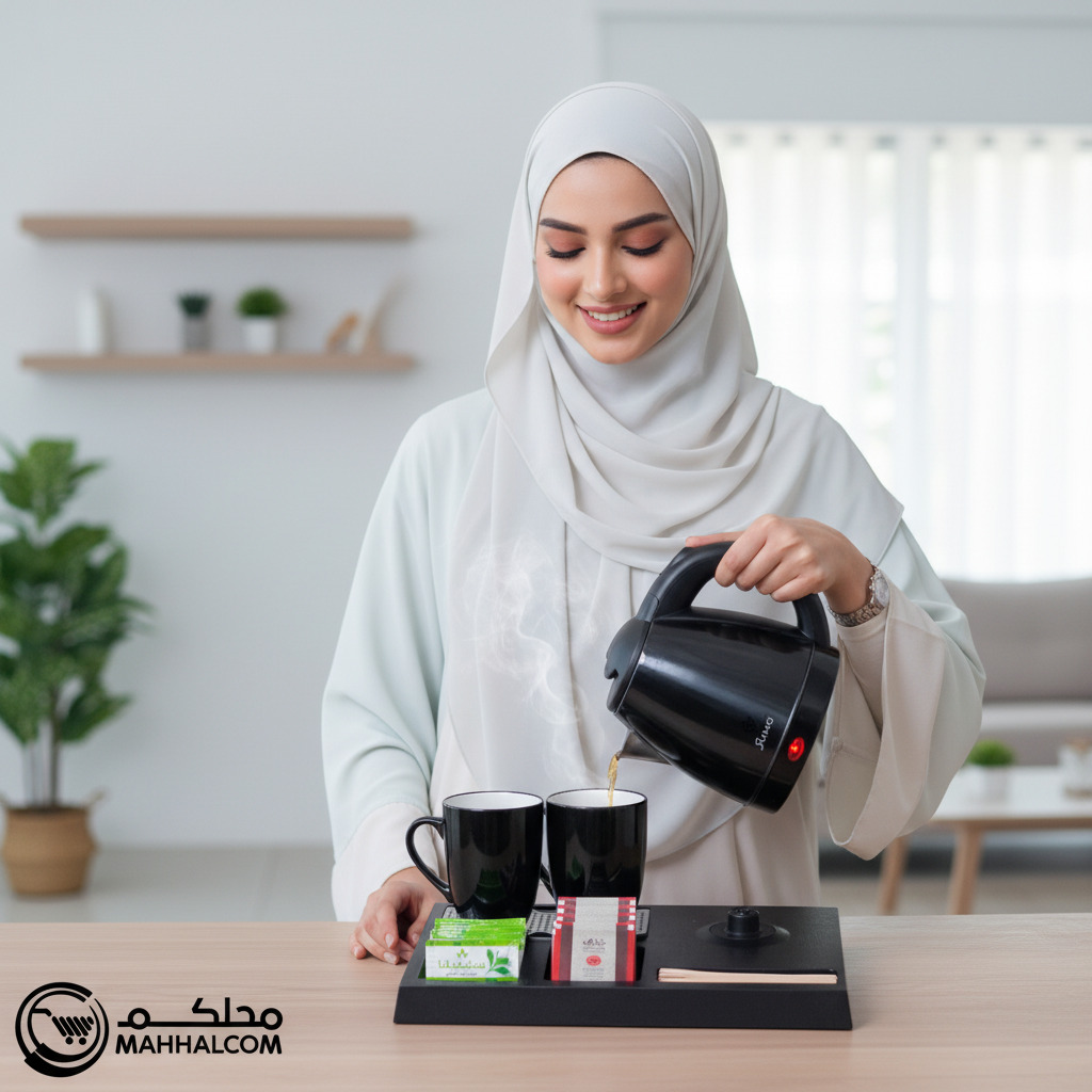 Perfect for hotel rooms, offices, and modern homes, this electric kettle features a double-wall design that ensures faster boiling and better insulation, keeping the exterior cool to the touch.