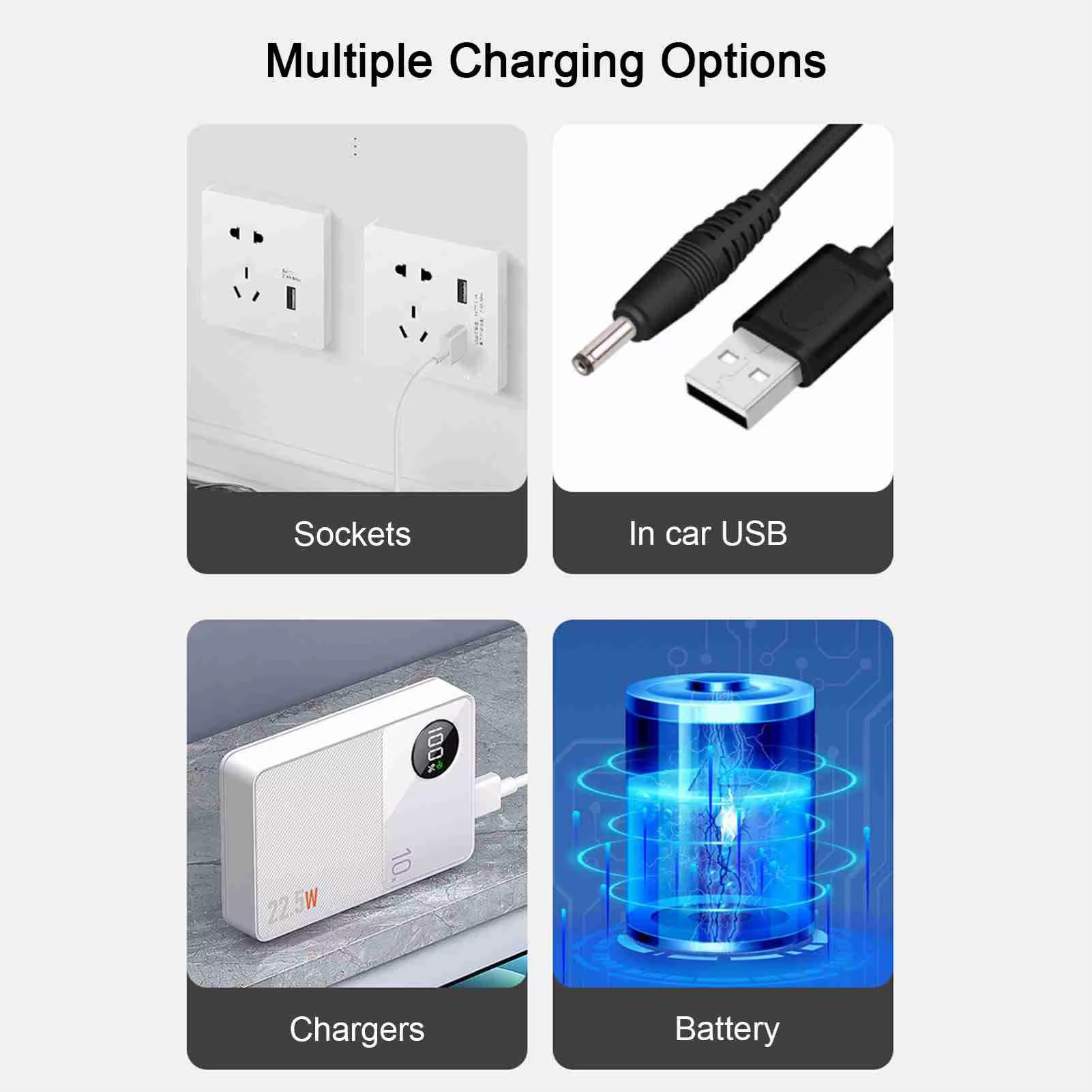 Power Supply: USB Cable, Power Adapter, Power Bank, or Car USB Port