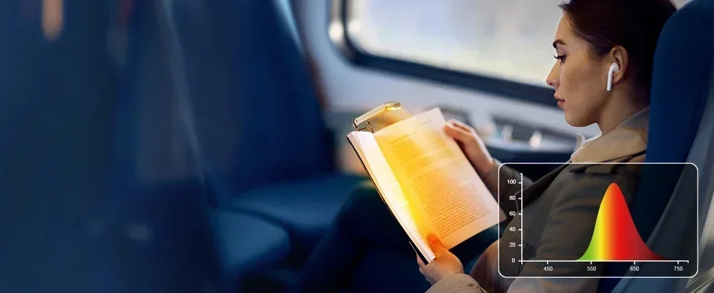 LED rechargeable book light – foldable, portable, 2 brightness modes, USB direct charging, long-lasting and lightweight. Perfect for night reading & travel.