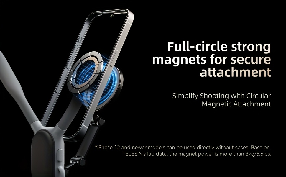 Capture stable, hands-free videos with the TELESIN Mobile Phone Magnetic Holder, designed for vloggers, riders, anglers, and outdoor enthusiasts. Featuring a magnetic suction ring and rotating multi-angle design, this mount allows you to record first-person perspectives seamlessly while keeping your phone secure.