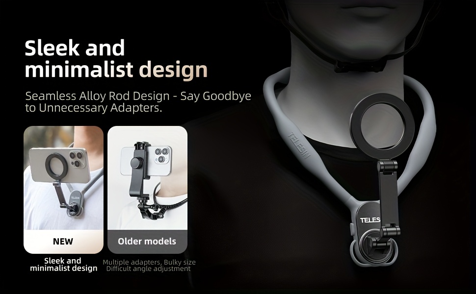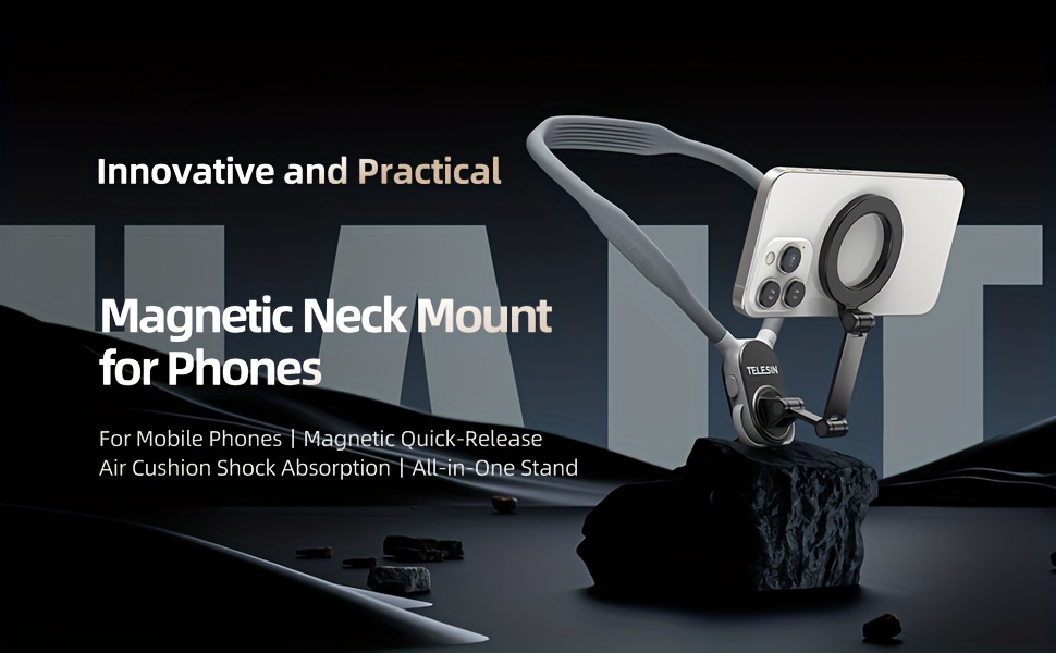 TELESIN Magnetic Neck & Chest Holder — hands-free, multi-angle phone mount for stable VLOGs, riding, fishing, and outdoor shooting.