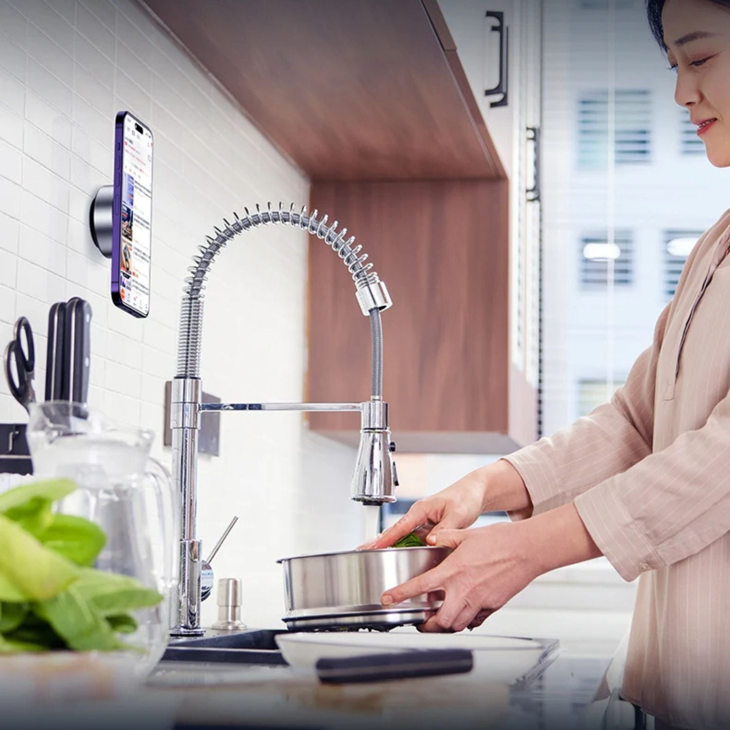 Simplify your cooking experience with our magnetic holder! Keep your phone securely in view while you cook, for easy access to recipes and timers. Enjoy the freedom to multitask in the kitchen without worrying about your phone slipping or getting in the way.