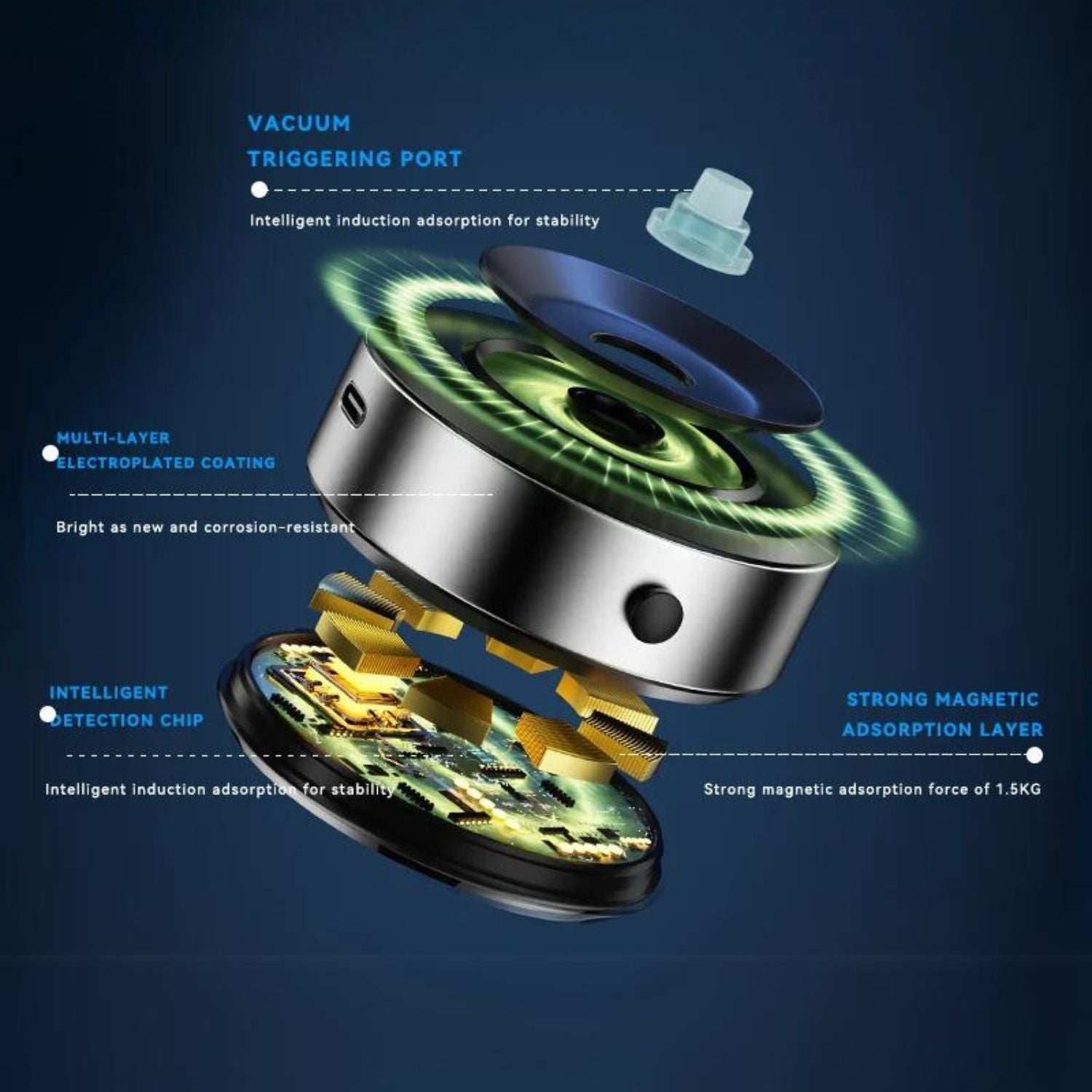 Discover the superior craftsmanship of our magnetic holder! Constructed with high-quality zinc alloy and ABS materials, this holder is built to last. With 16 powerful magnets providing a 1.5KG adsorption force, it ensures a secure and stable grip for your device. Experience peace of mind knowing your phone is in safe hands with our robust and reliable design.