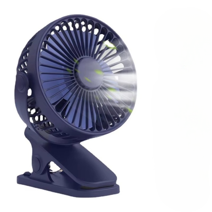 Mini USB clip fan – portable, silent, 3-speed cooling with 360° rotation, strong clamp, and child-safe design for desk, dorm, stroller, or travel.