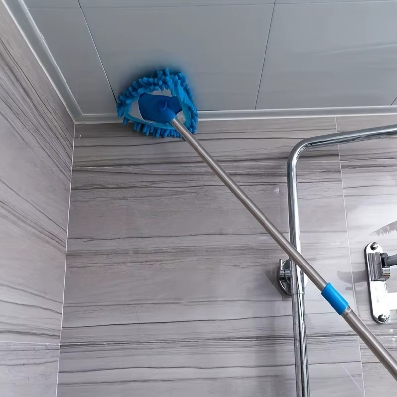 360° rotatable triangular mop with extendable handle and chenille head—perfect for deep cleaning hard-to-reach corners, ceilings, mirrors, and more.