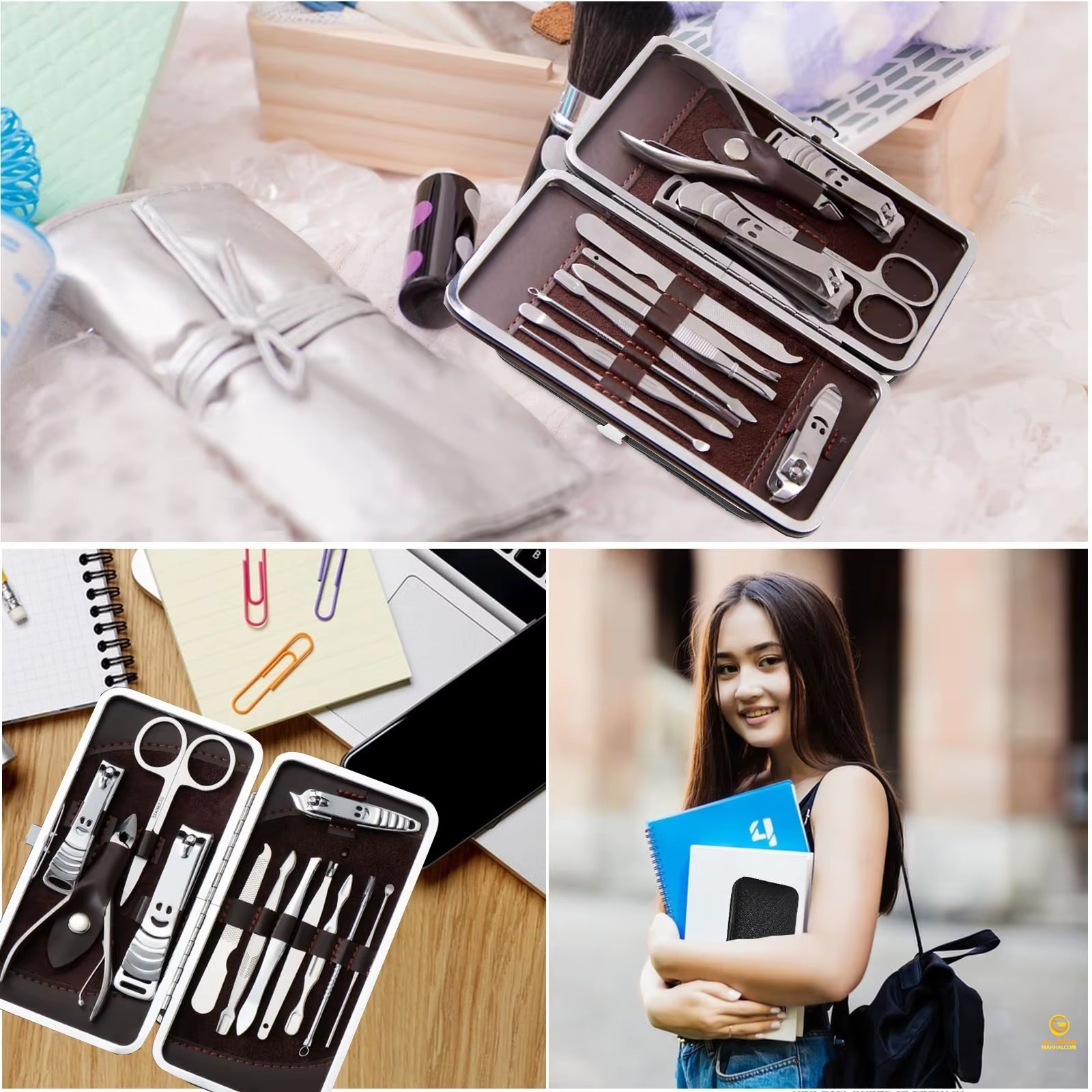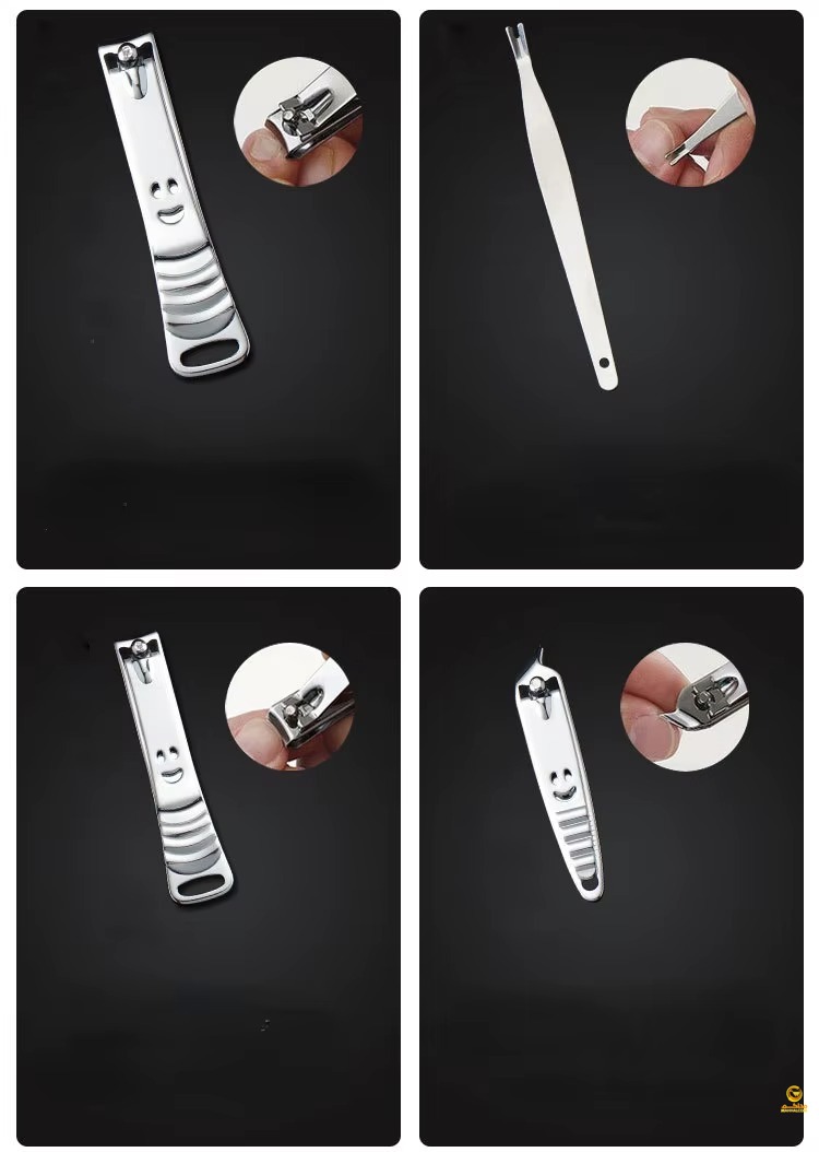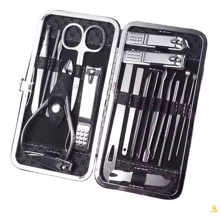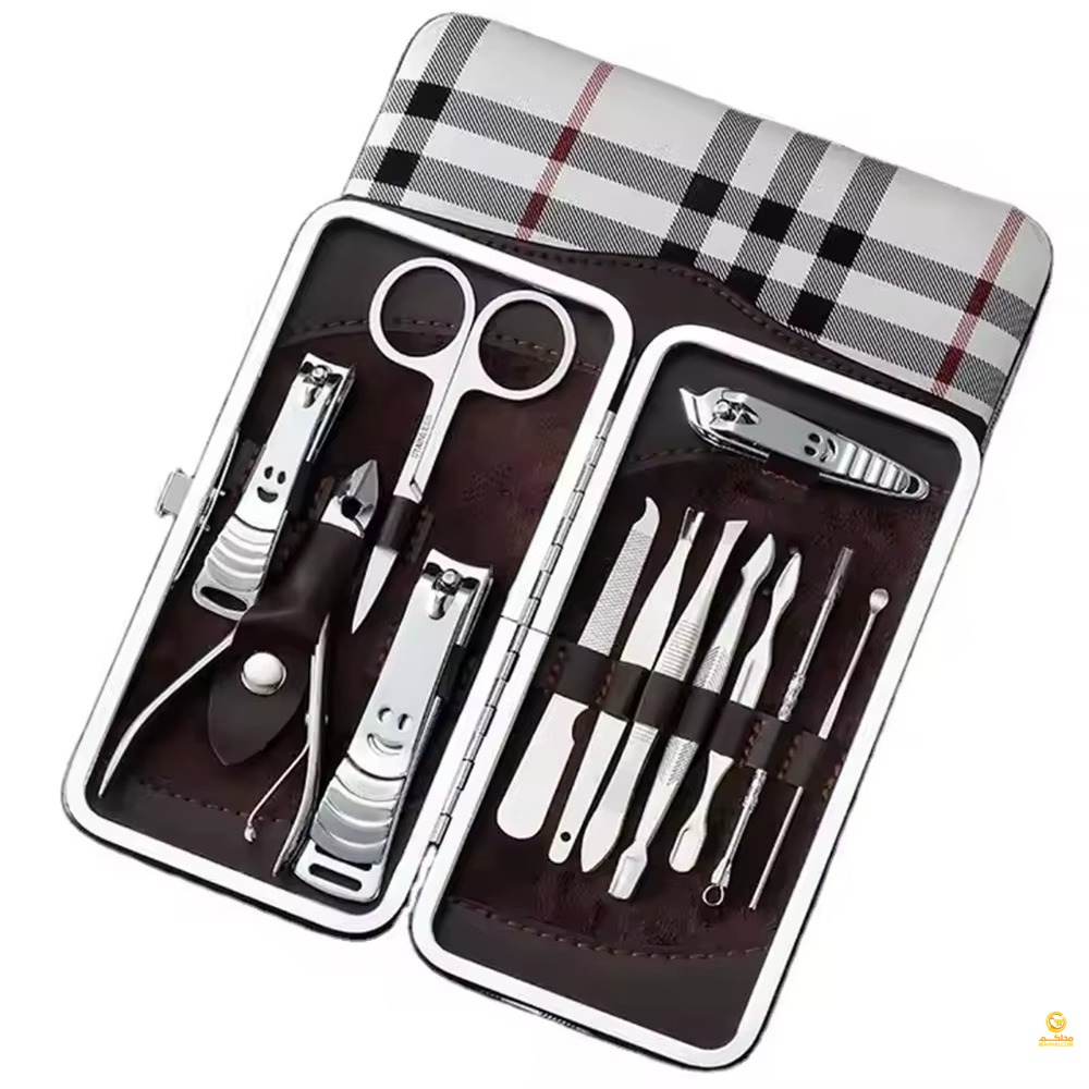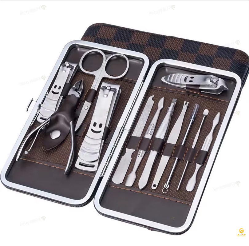 The Nail Clipper Beauty Tools Set is a professional 12-piece stainless steel manicure and pedicure kit designed for precision and durability, featuring high-quality sharpened clippers and grooming tools that cut thick nails smoothly and easily. The kit includes nail and toenail clippers, diagonal clipper, multi-purpose scissors, cuticle trimmer, tweezers, nail file, peeling knife, blackhead remover, and more, all organized in a stylish compact case measuring 15.5 × 8.5 cm. Perfect for home use, travel, or gifting, this set combines functionality with elegance, making it suitable for both men and women.