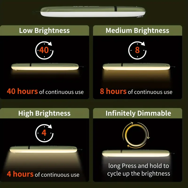✨🎒 Featuring multiple lighting modes, including soft light, bright light, and emergency mode (depending on model), you can adjust brightness to suit your environment—whether inside a tent or in open outdoor spaces. The daylight 6000K LED provides clear, bright illumination with high efficiency (150 lm/W).