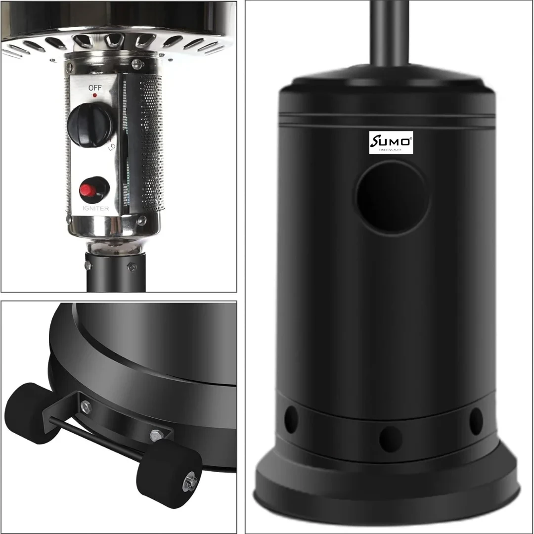 outdoor patio heater, gas patio heater, Sumo heater, vertical outdoor heater, 13.5 kW gas heater, outdoor heating system, garden heater, balcony heater, terrace heater, portable outdoor heater.