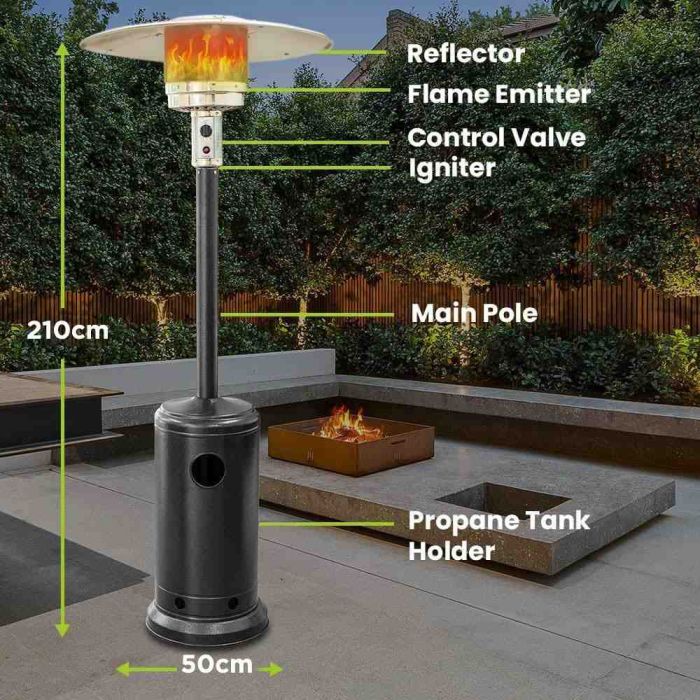 Ideal for residential and commercial outdoor spaces, this patio heater is easy to install with clear instructions and all essential tools included. Enjoy a warm and inviting outdoor atmosphere all winter long.