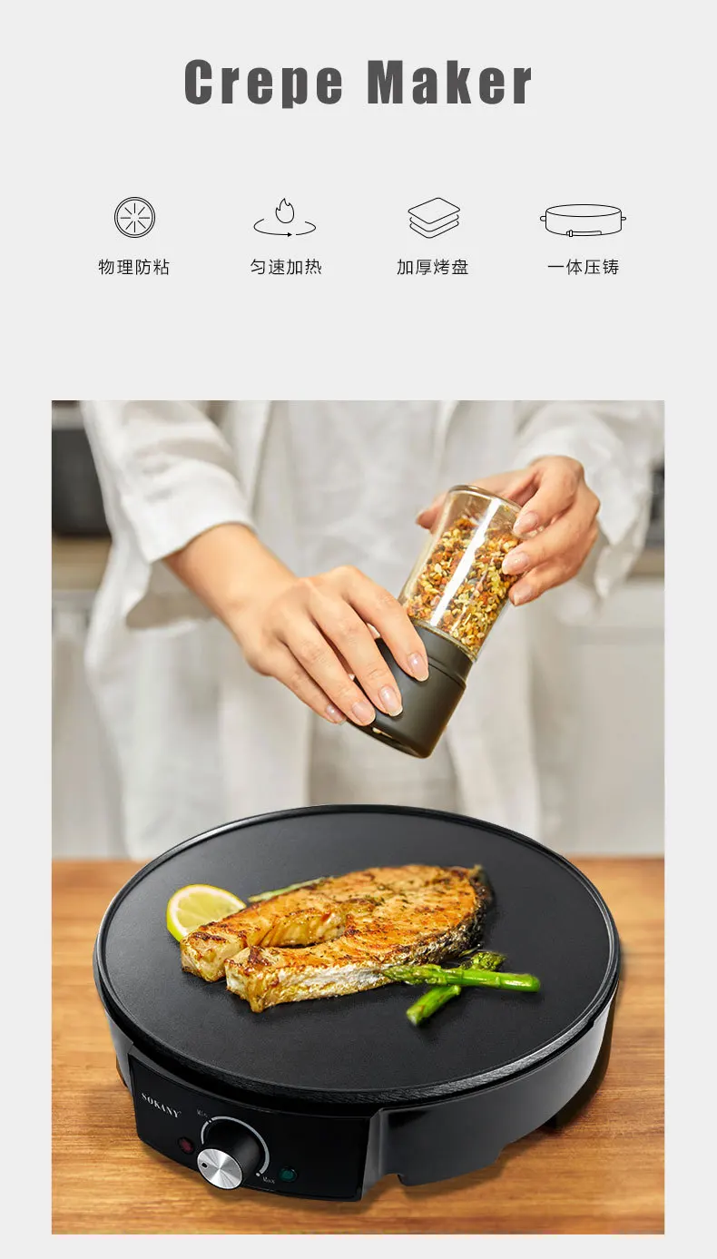 Create perfect pancakes and crepes effortlessly with our Pancake & Crepe Maker. Featuring a non-stick surface, adjustable temperature control, and even heat distribution, it ensures flawless cooking every time. Compact design and easy-to-clean construction make it a must-have kitchen appliance. Enjoy delicious results with minimal effort.