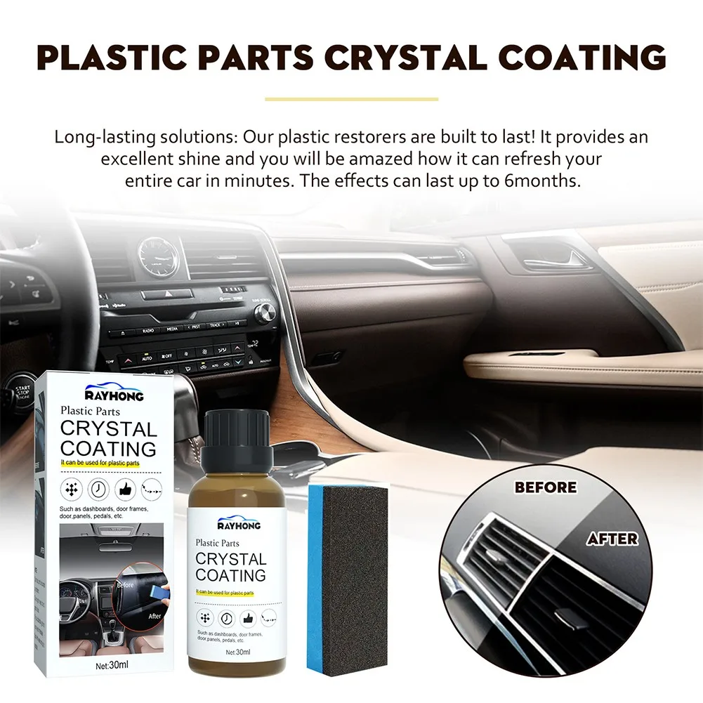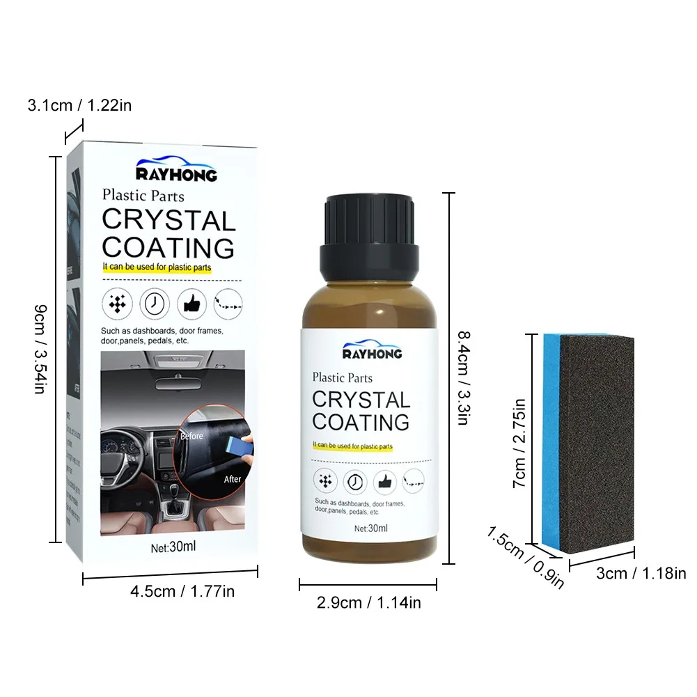 Plastic Restorer for Car Refurbish  30ml Plastic Restorer for Car with Sponge Long Duration plastics Parts Refurbishment Crystal Coating Refurbish Agent.