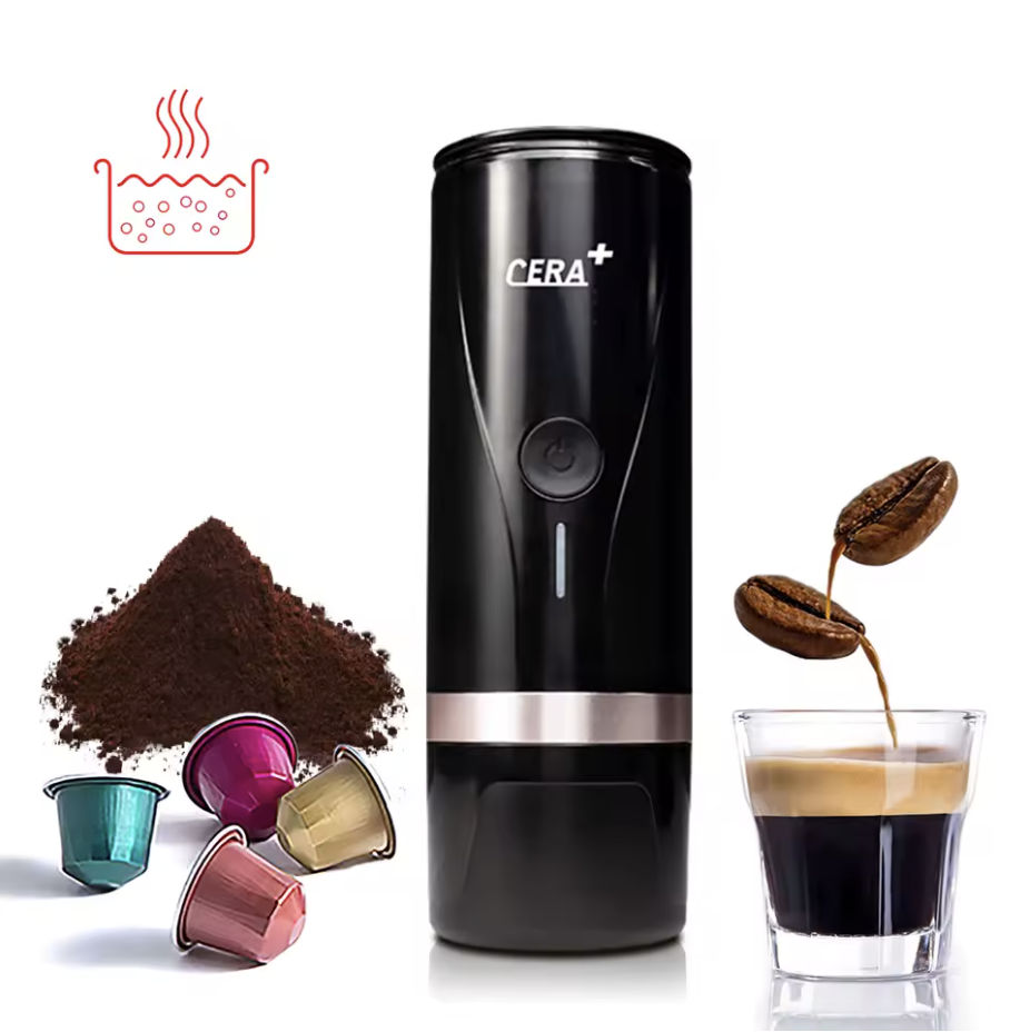 Enjoy café-quality espresso anytime, anywhere with the CERA+ Portable Automatic Espresso Coffee Machine (Model PCM03). Compact, stylish, and powered by a 7800mAh rechargeable battery, this espresso maker is perfect for home, office, travel, and even in the car. With its sleek ABS resin and aluminum alloy design, it combines durability with elegance for true coffee lovers.
