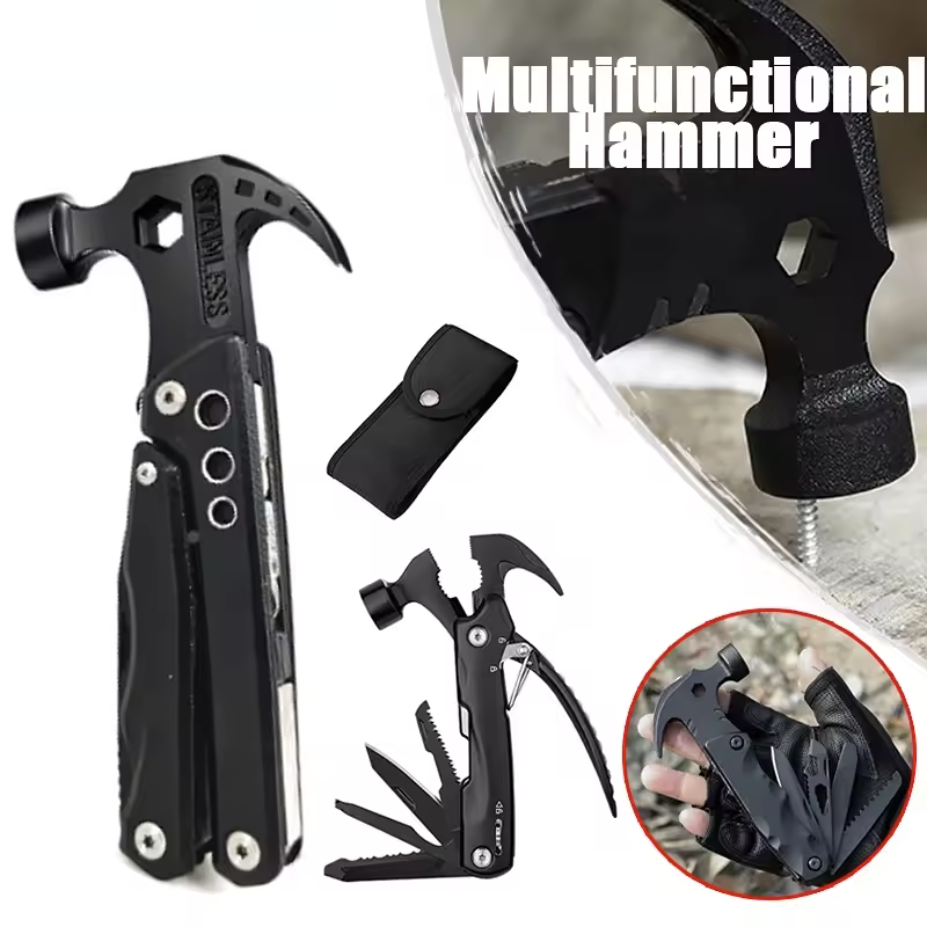 Stainless Steel Knife Plier Tool Multitool Claw Hammer Nylon Sheath Outdoor Survival Camping Hiking Portable Pocket Claw Hammer