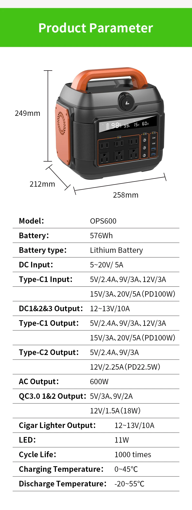 Outdoor 600w 567wh 160000mah support AC DC PD type-c