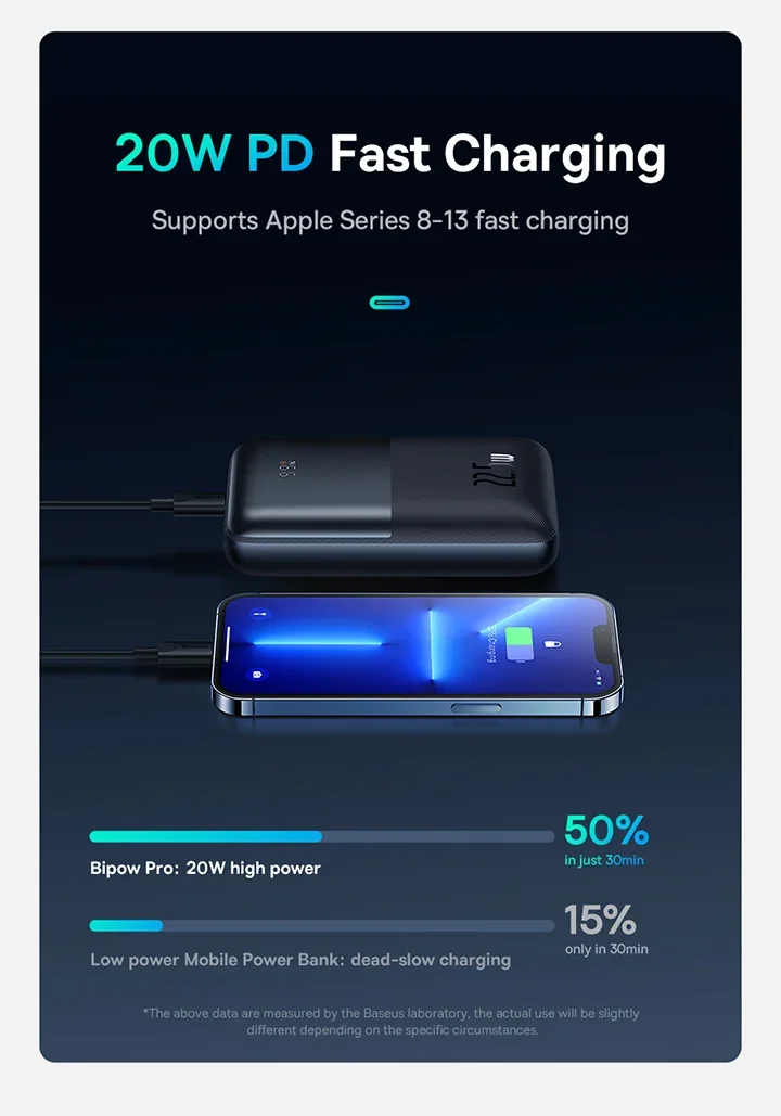 Baseus Portable Digital Display Fast Charge Power Bank 20000mAh 22.5W Bipow Pro
