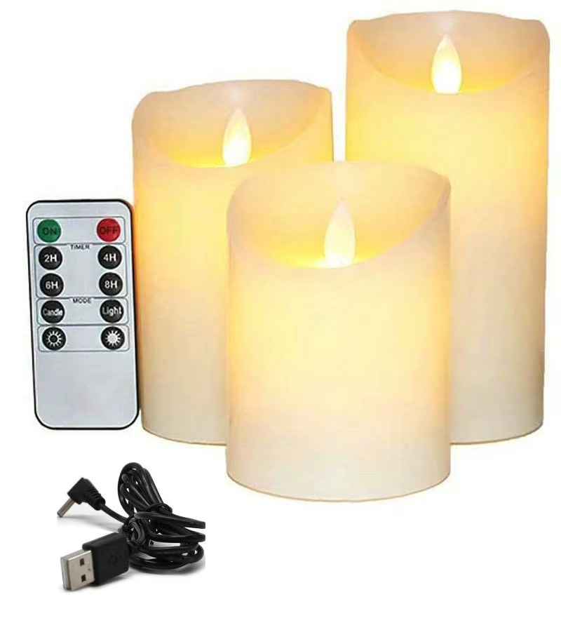 • Includes: 3 × LED Candles, 1 × Remote Control, 1 × USB Charging Cable