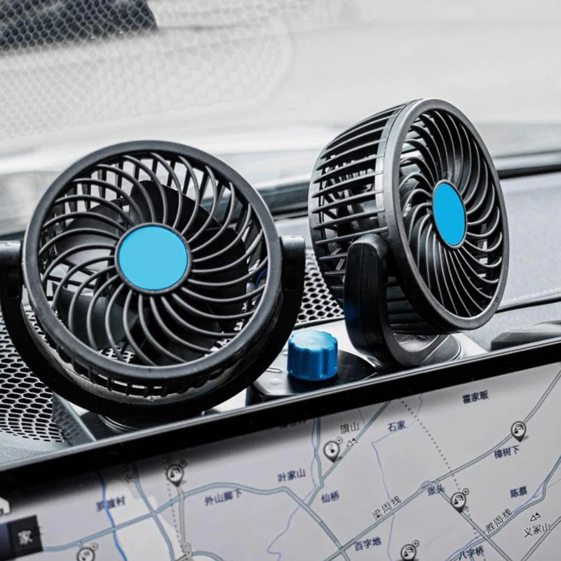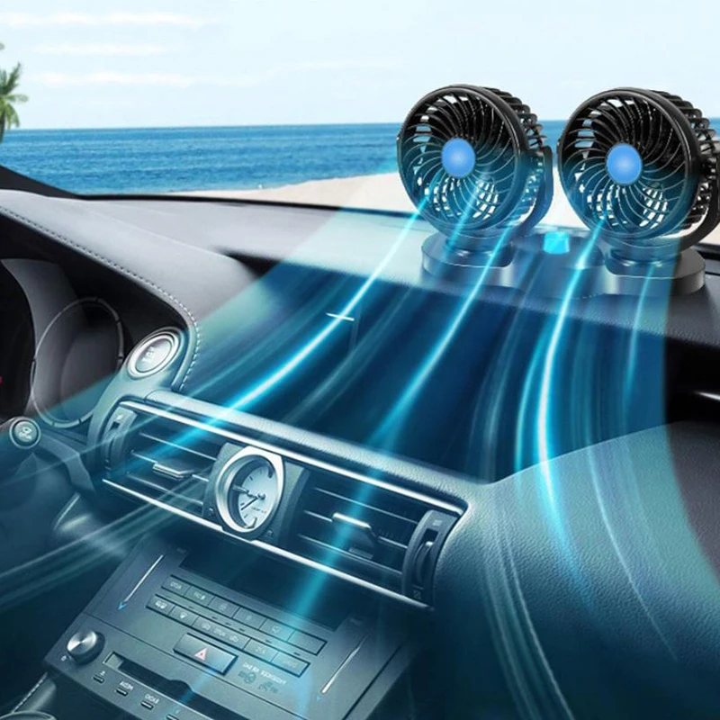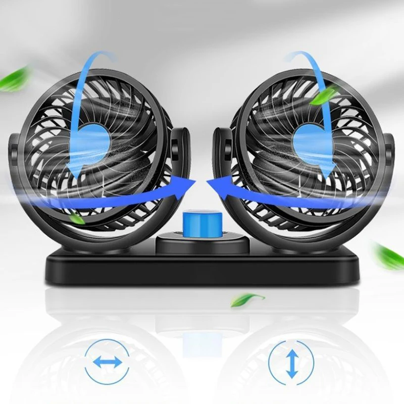 🚗 Rotating Vehicle Fan – Dual-Head 360° Adjustable Car Cooling Fan (12V/24V, Low Noise, Energy Saving)