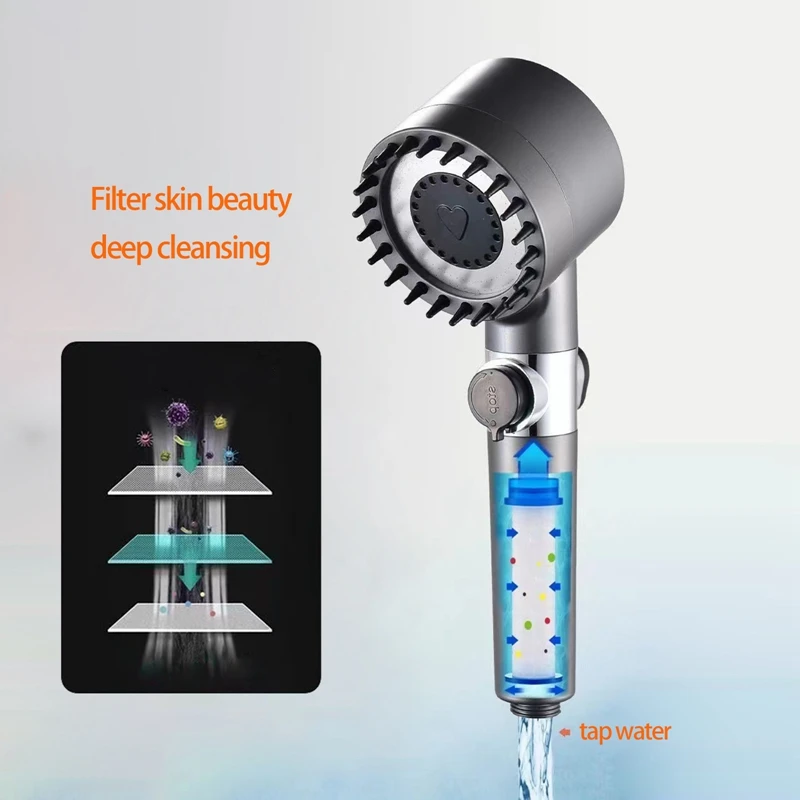 3. Use different modes to rinse the head, and the shower with filter can keep the passing water clean