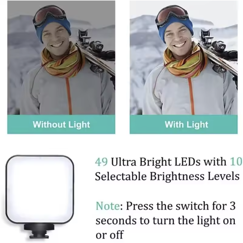 1,Regarding the LED fill light: After installing the battery, long press the power switch to turn it on!